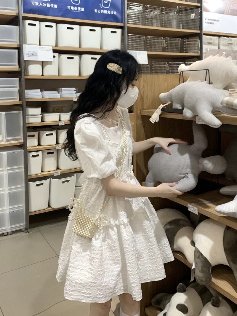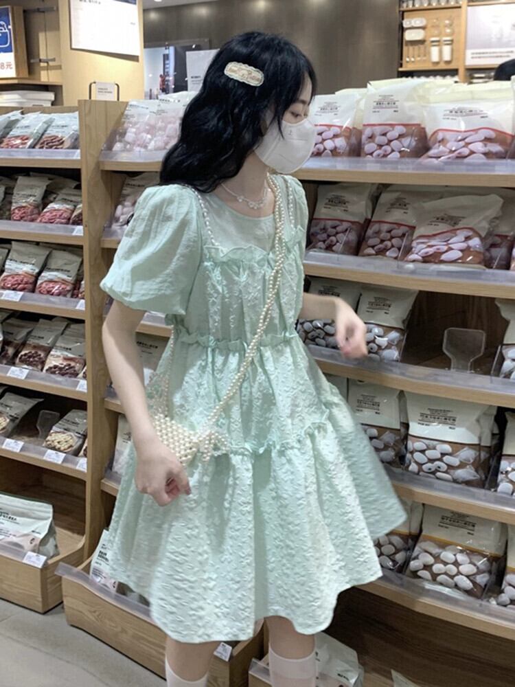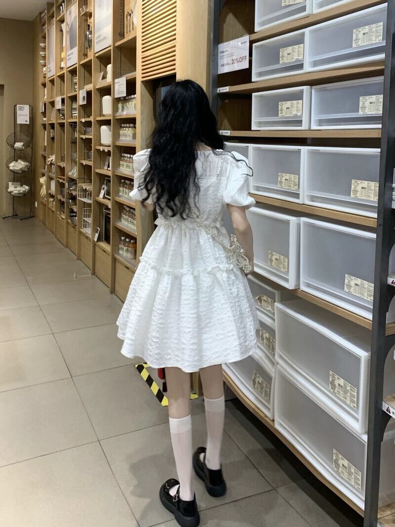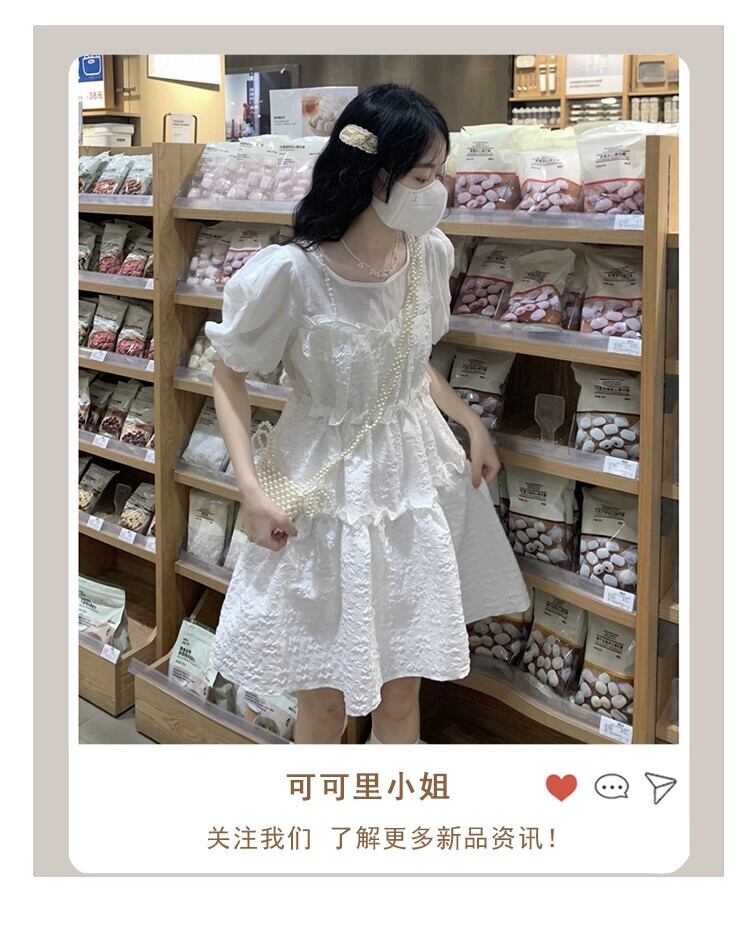 ガーリーフリルステッチふわふわスカート夏 2023 新しいスタイル西洋スタイルハイウエストパフスリーブドレス女性の潮 ハイウェスト ラッフル サマー 夏物 missk5736092068