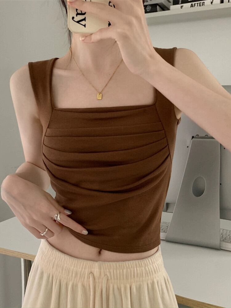 スクエアカラープリーツボトミングベスト女性の夏バージョン2023新しい自己修養スリミング甘くてスパイシーなスタイルの内側と外側の摩耗ジャケット 大人ガーリー スウィート キュート カジュアル サマー 夏物 スクウェア missk32957029112
