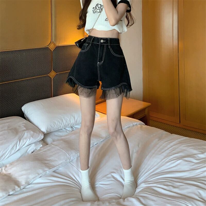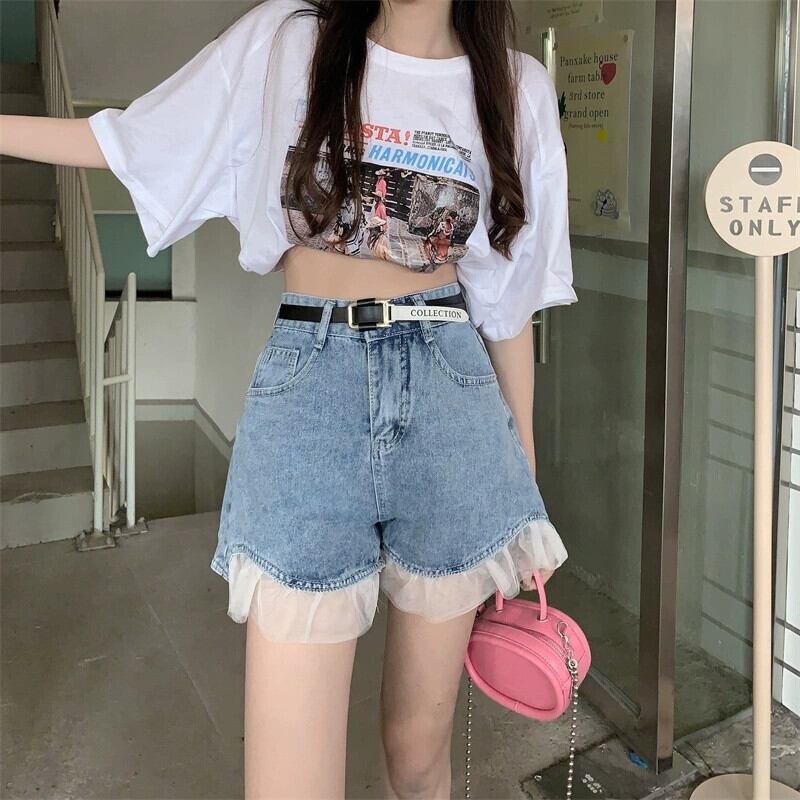 ホットデニムショートパンツレディース2023夏新デザインセンスハイウエスト薄手レースステッチアウターパンツ ハイウェスト サマー 夏物 ショーツ ブルマー missk96696502884