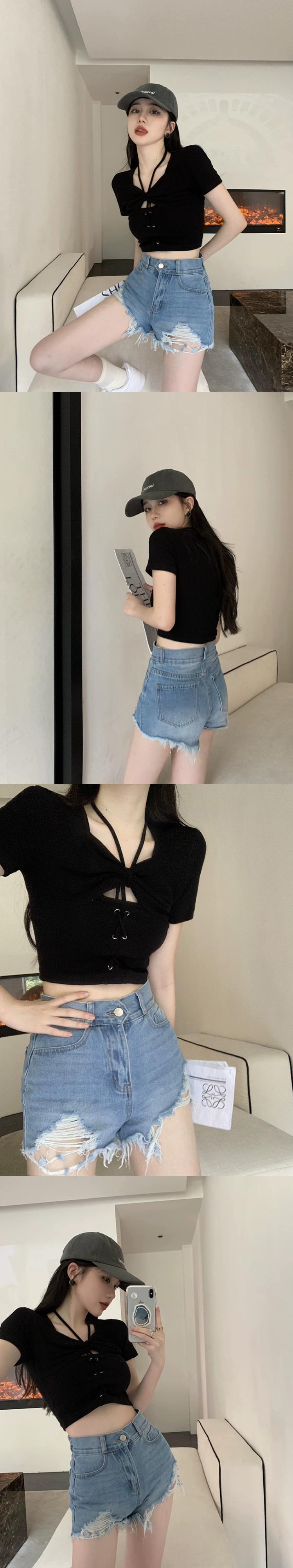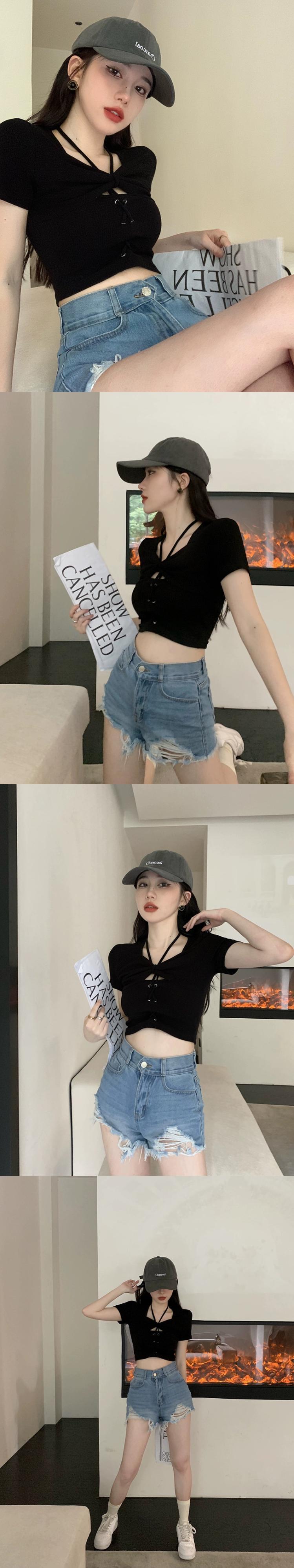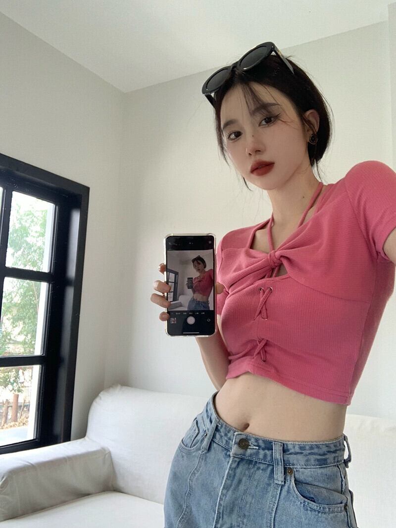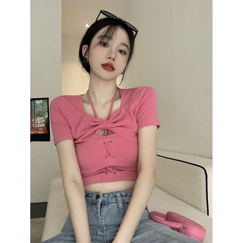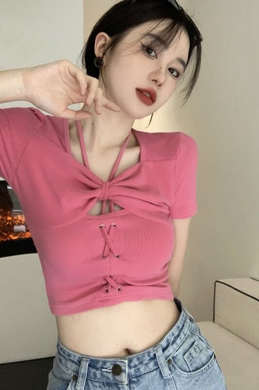 純粋な欲望風慎重に機械ショート Tシャツ夏の新しい自己修養の弓中空空気品質半袖トップ女性 リボン サマー 夏物 missk26350079585