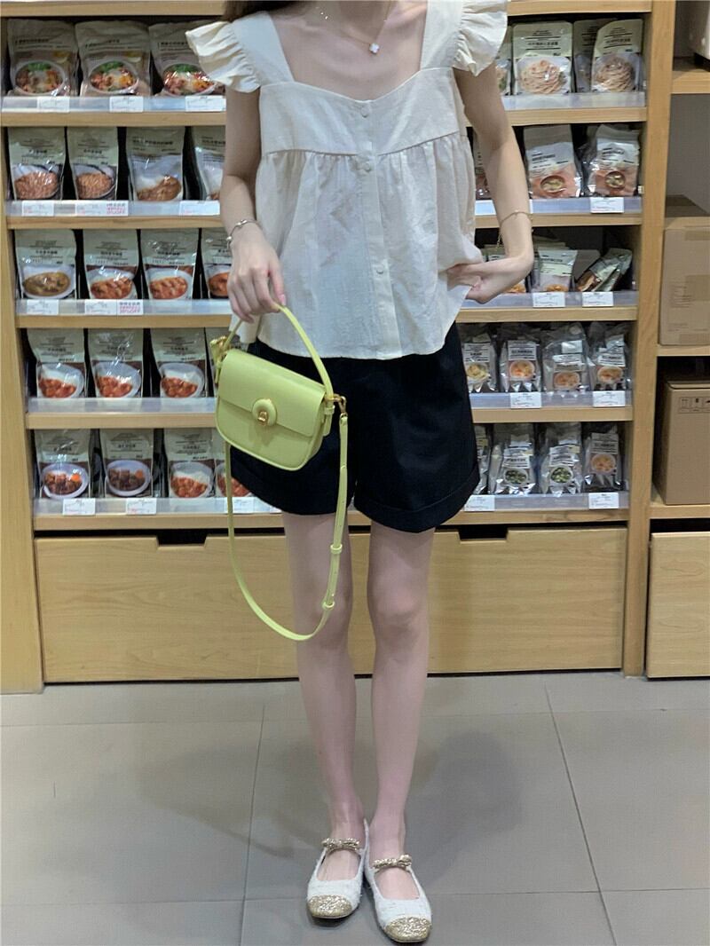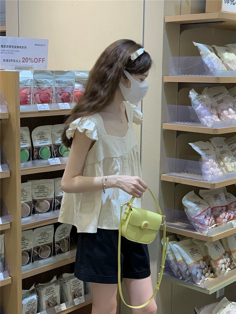 2023 夏の新ベージュ小さなフライングスリーブベストルーズショートセクションスリムスクエアカラーサスペンダーショートセクション女性のトップ潮 サマー 夏物 スクウェア missk78154915298