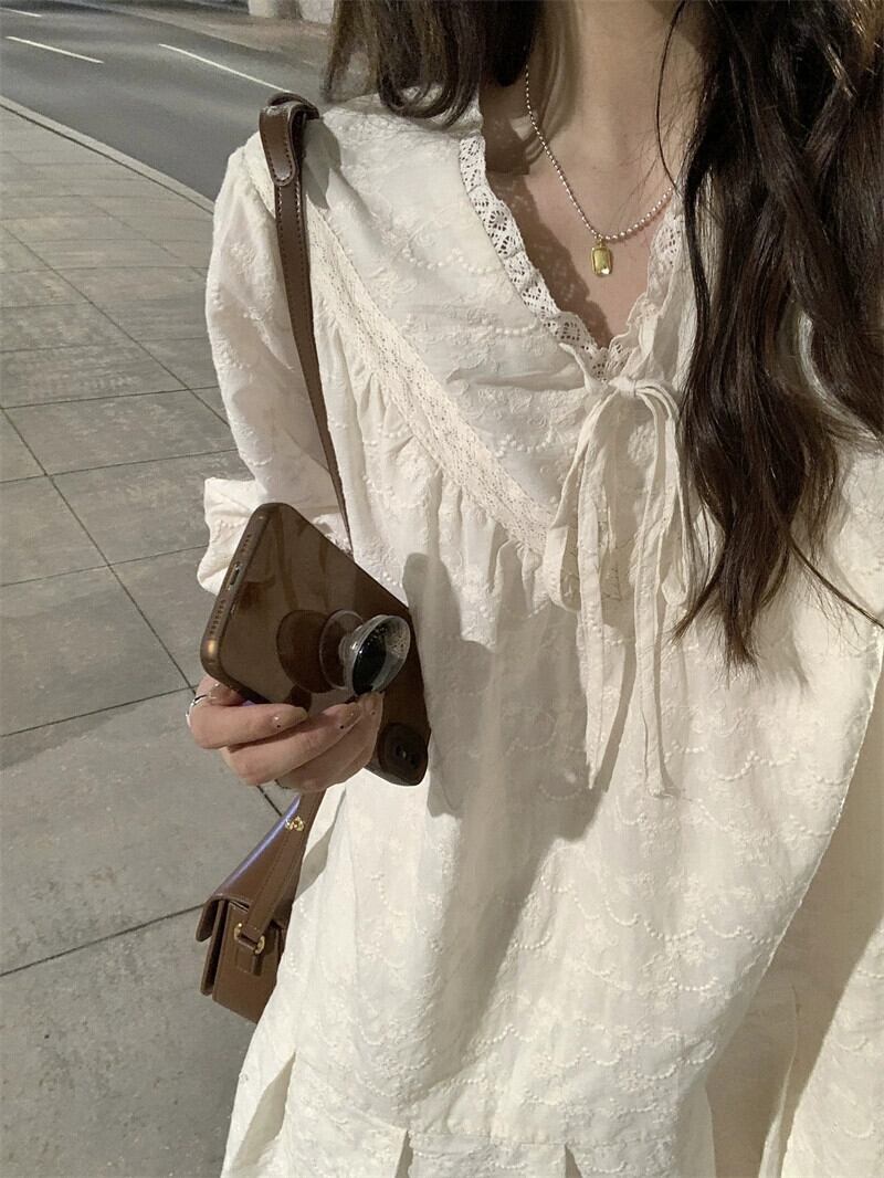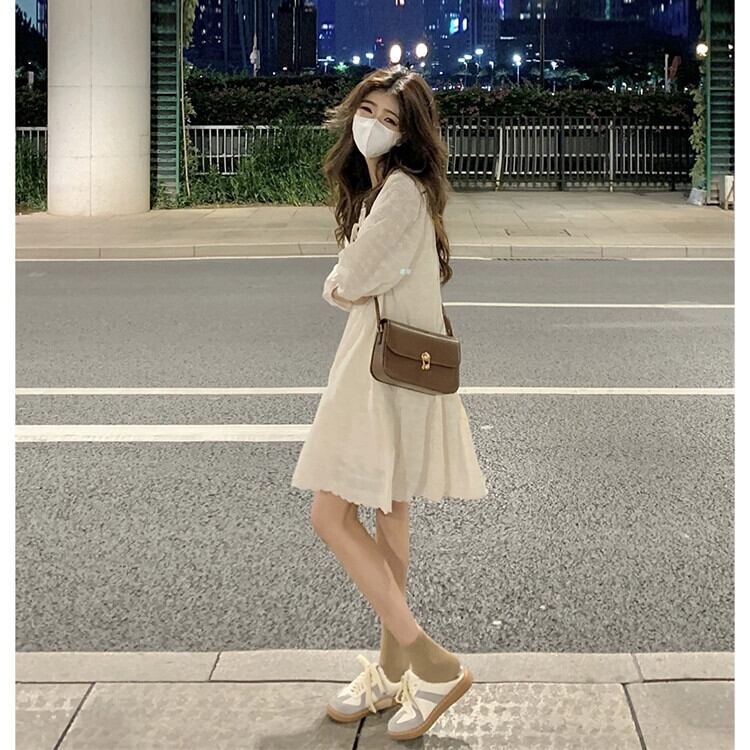 フレンチ V ネック初恋長袖ドレスの女性の夏の新しい優しい気質デザイン甘い A ラインスカート ロング 大人ガーリー スウィート キュート カジュアル サマー 夏物 Vネック Aライン missk75479029996