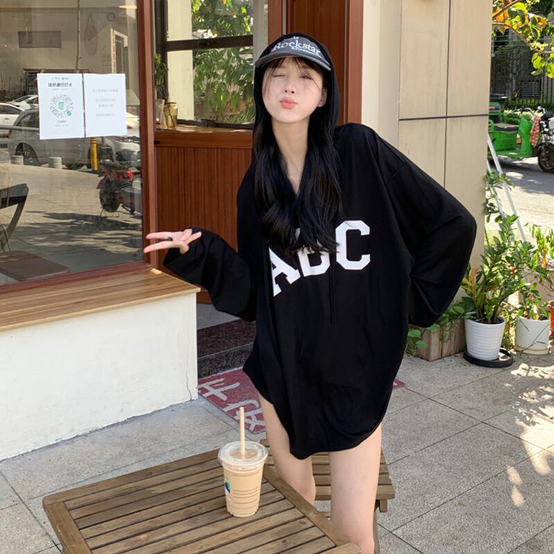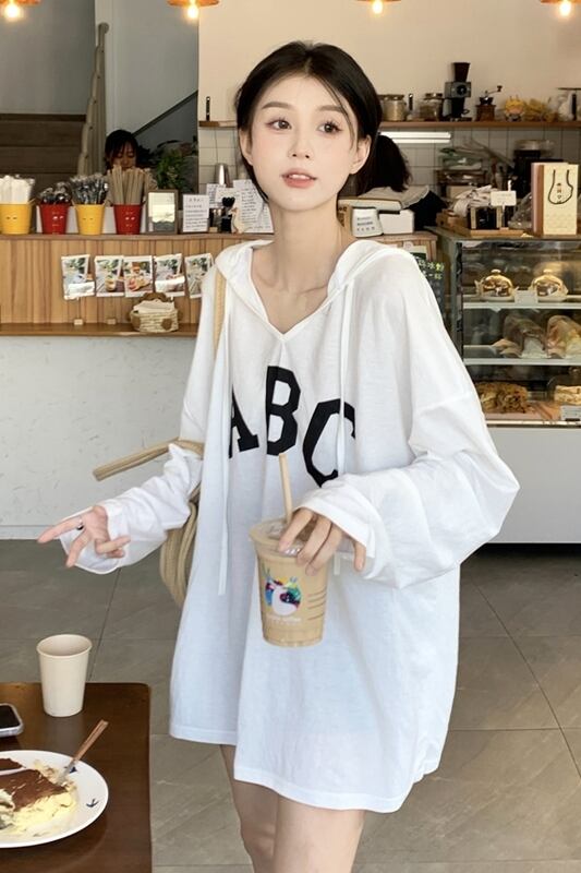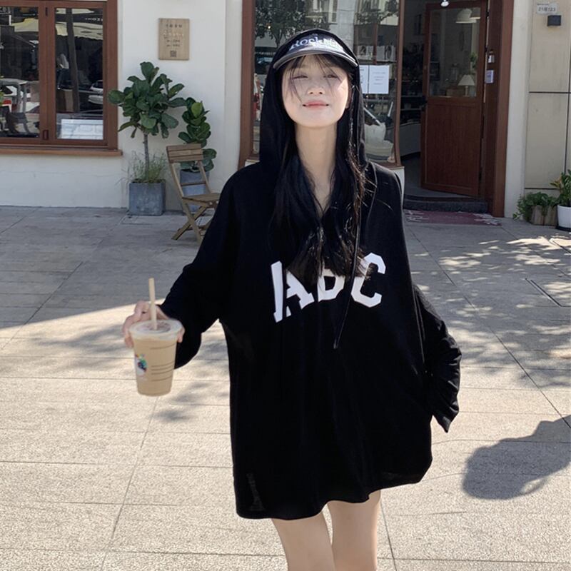 フード付き薄肉長袖日焼け止め Tシャツ女性の夏バージョン 2023 新しい怠惰な風ミッドレングスルーズトップ潮 ロング サマー 夏物 missk76544411172