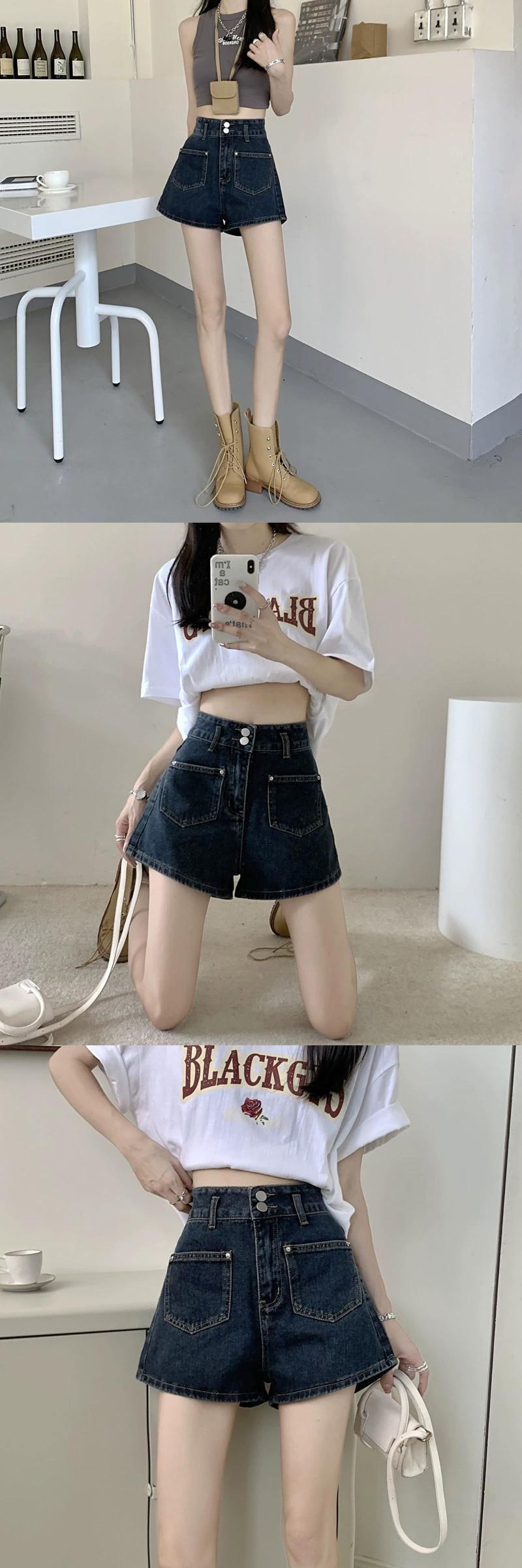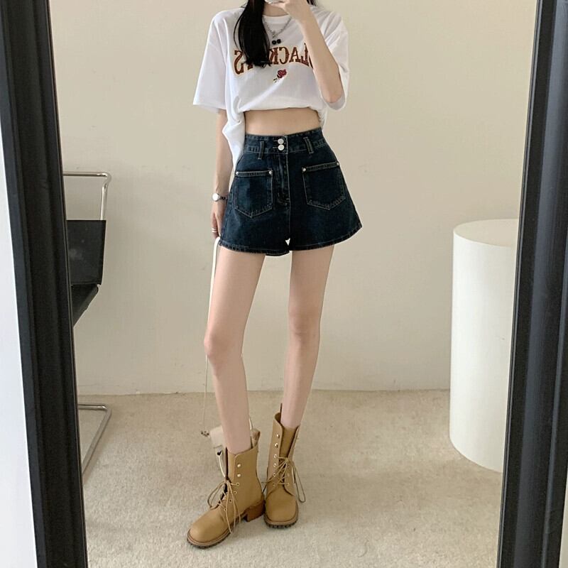 夏バージョン 2023 新しいハイウエスト薄型ファッションブルーオールマッチワイドレッグパンツジーンズショートパンツレディースパンツ ハイウェスト サマー 夏物 ショーツ ブルマー missk54537996745