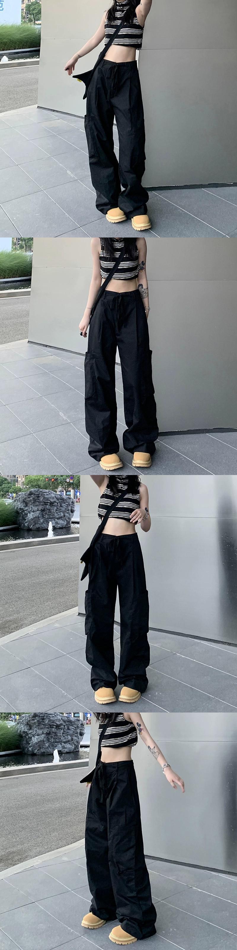 気質レトロオーバーオール夏 2023 新しいハイウエストスリムネクタイカジュアルパンツポケットワイドレッグパンツ婦人服 ハイウェスト サマー 夏物 ワイドパンツ missk54190723120