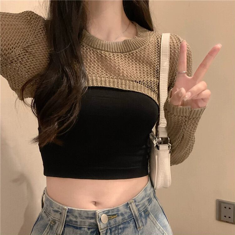 ショート中空日焼け止めニットブラウス女性の夏の 2023 新しいスタイルのアウターレイヤード長袖ショールトップ ロング レッド サマー 夏物 missk51609590459
