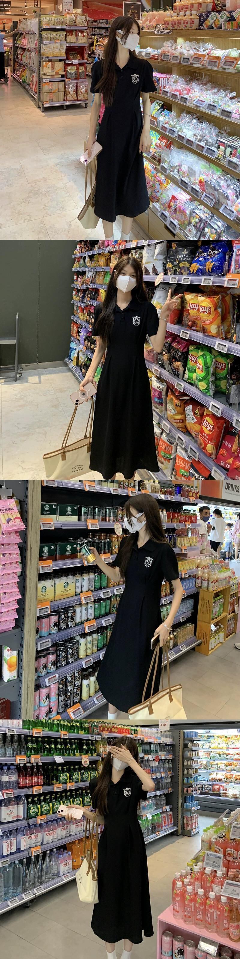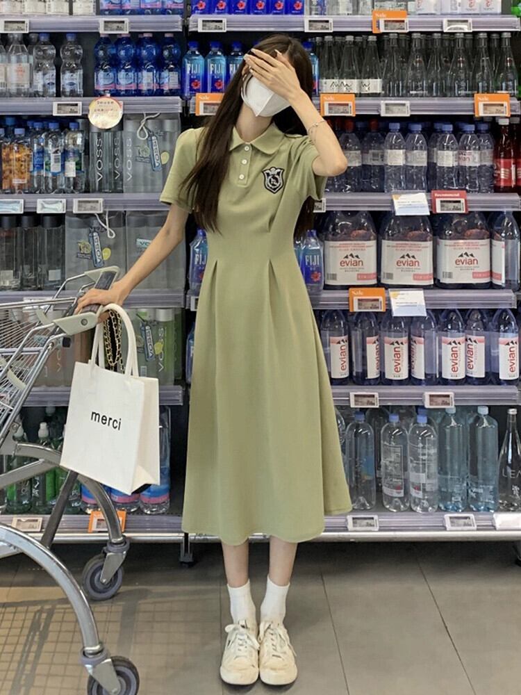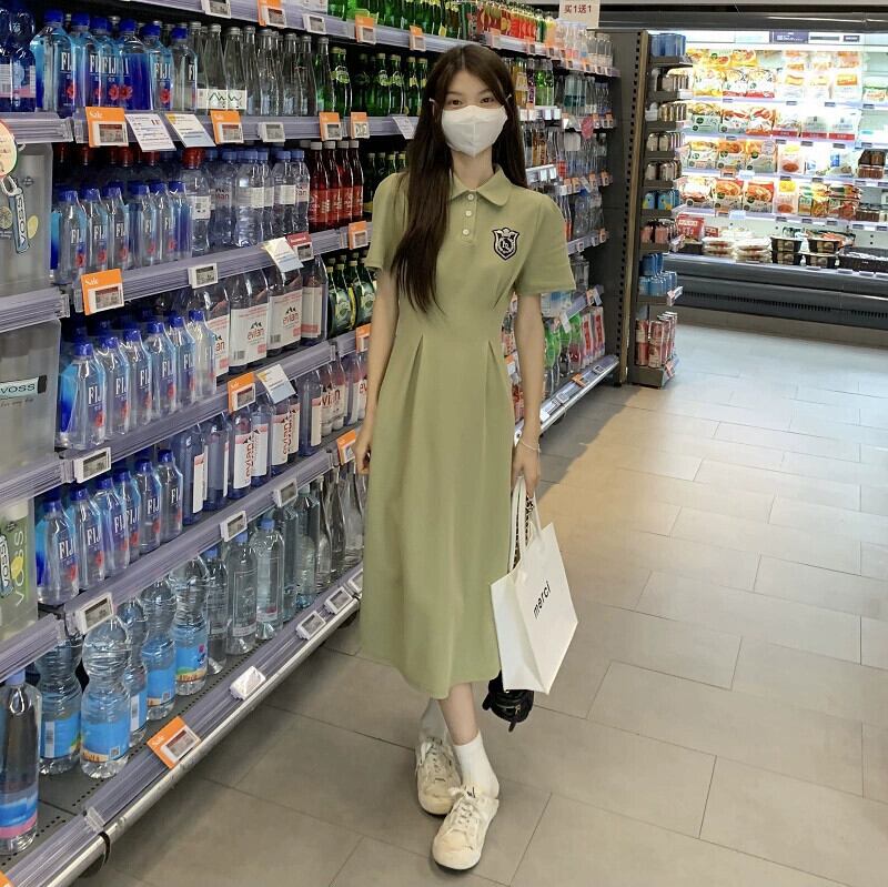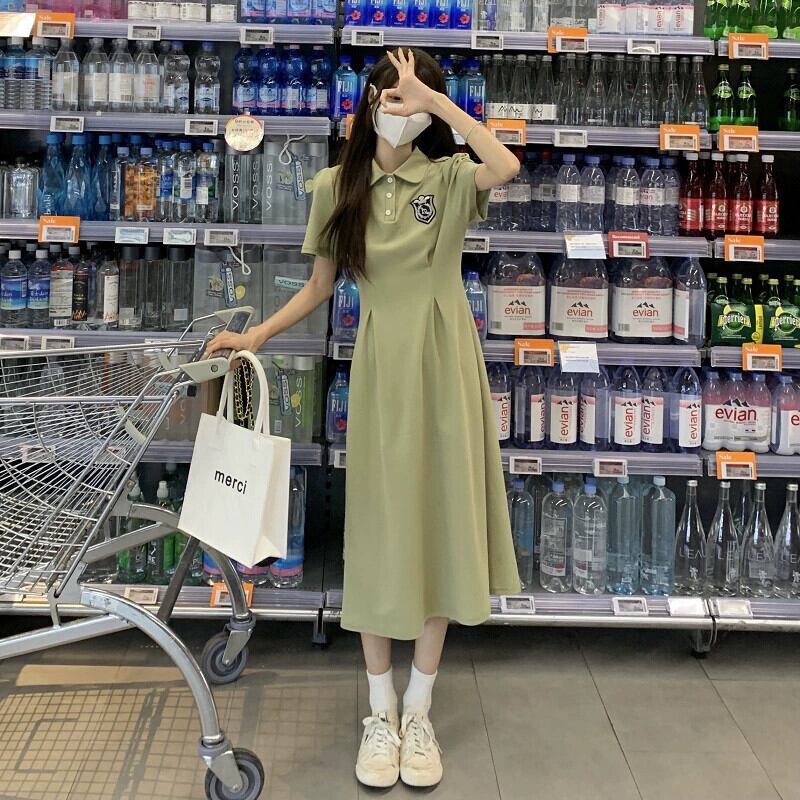 スタイルポロカラードレス女性の夏の 2023 新しいミッドレングスウエストウエストスリム初恋半袖 A ラインスカート サマー 夏物 Aライン missk55880226080