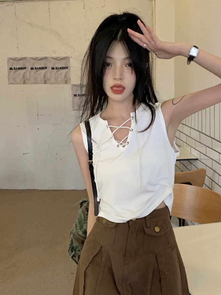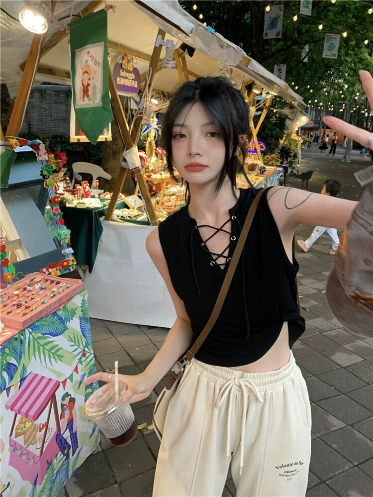 ホットガールベスト女性の夏 2023 ニッチ包帯感覚ショートセクションアウタースリムスリムアウタートップス サマー 夏物 missk32671266952
