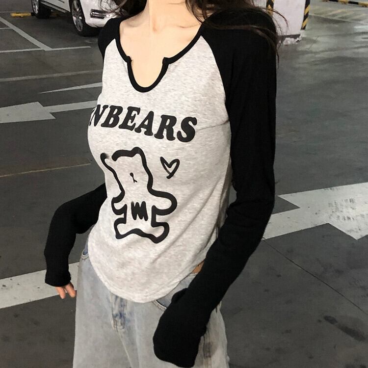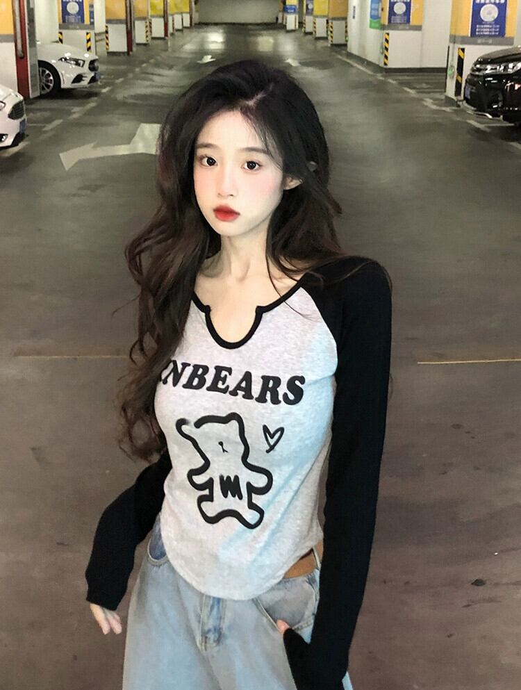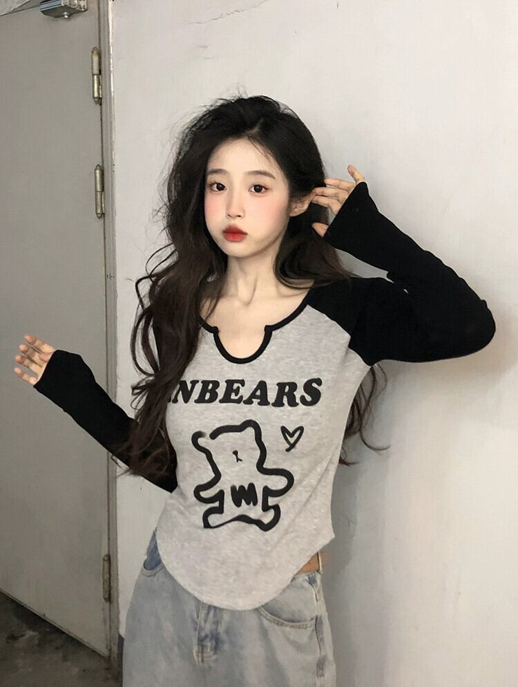クマプリントTシャツレディース夏バージョン2023新しいスリムフィットとカラーマッチングデザインセンスショート長袖トップ ロング サマー 夏物 missk61624476950