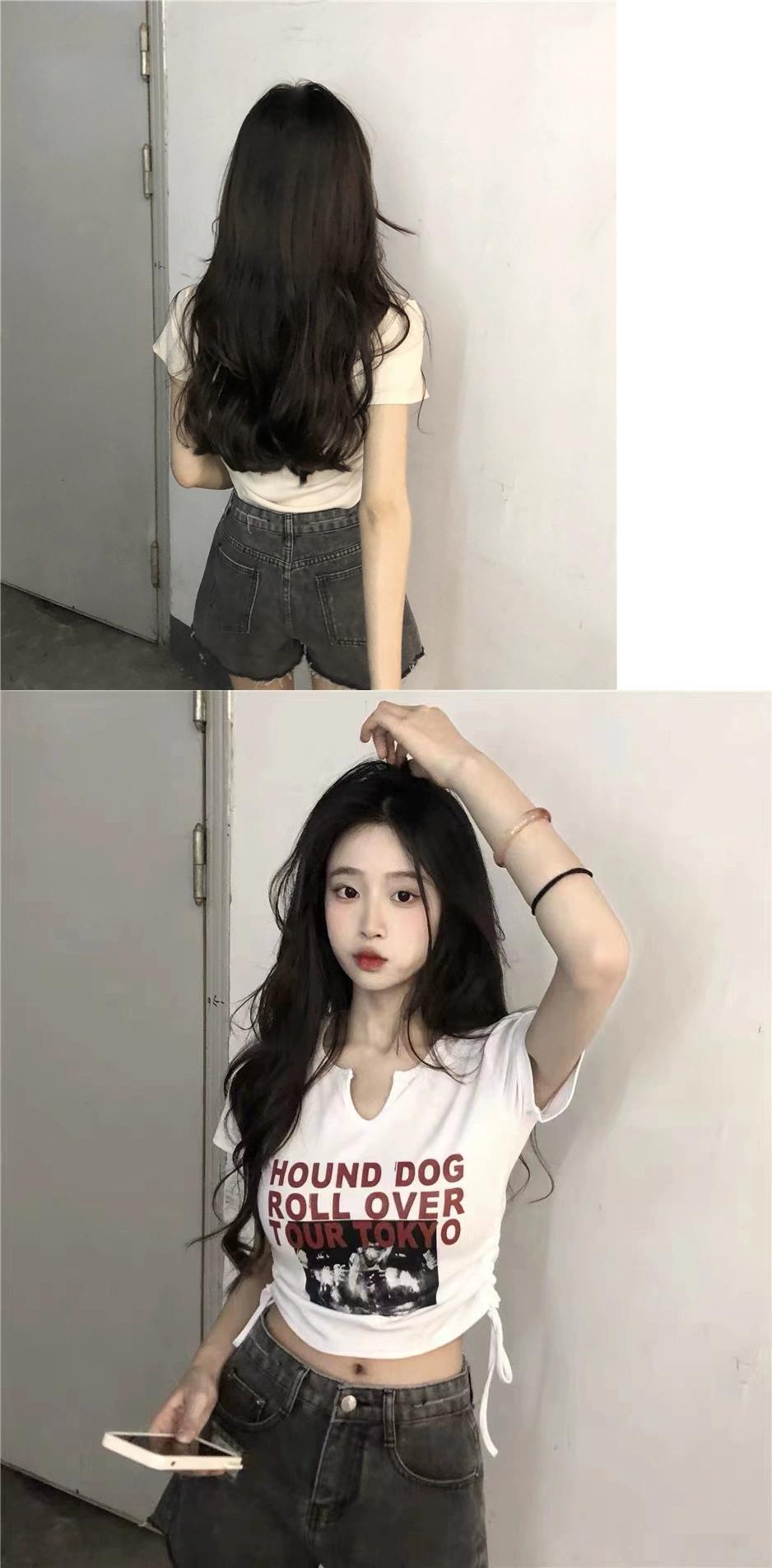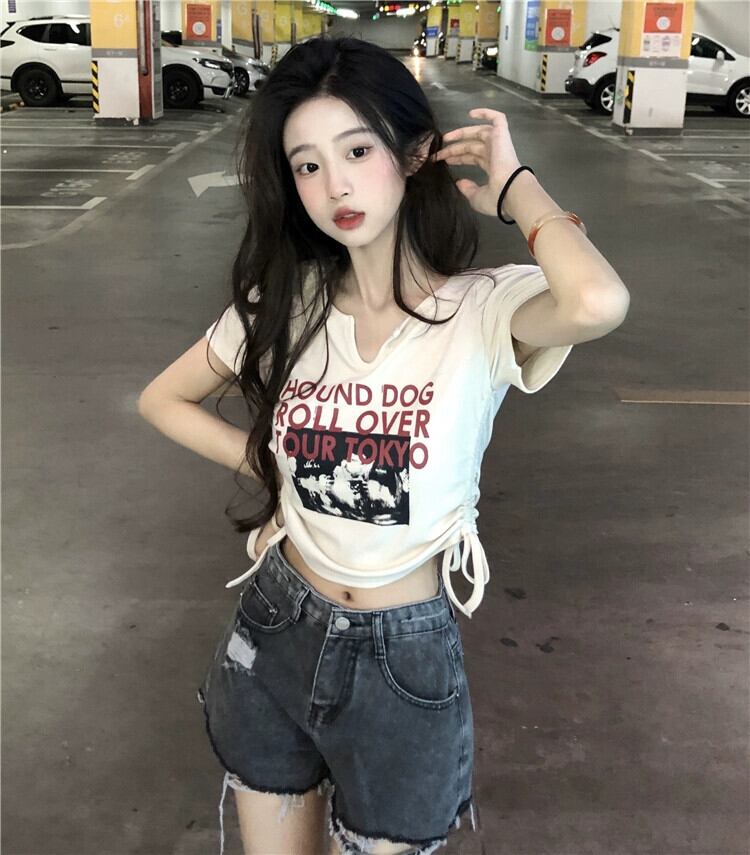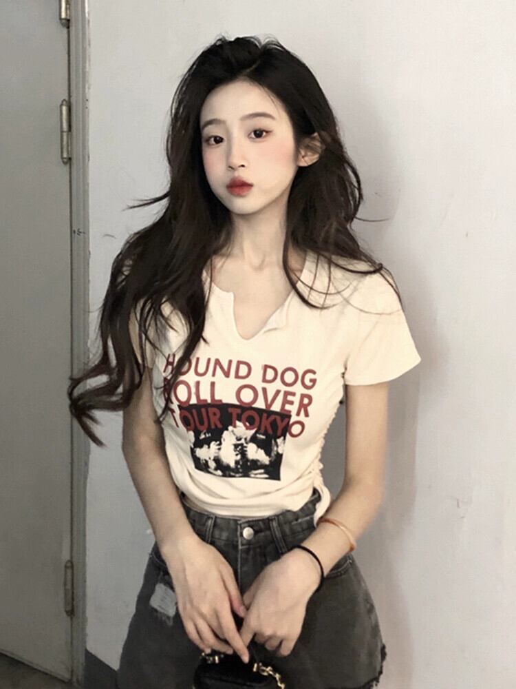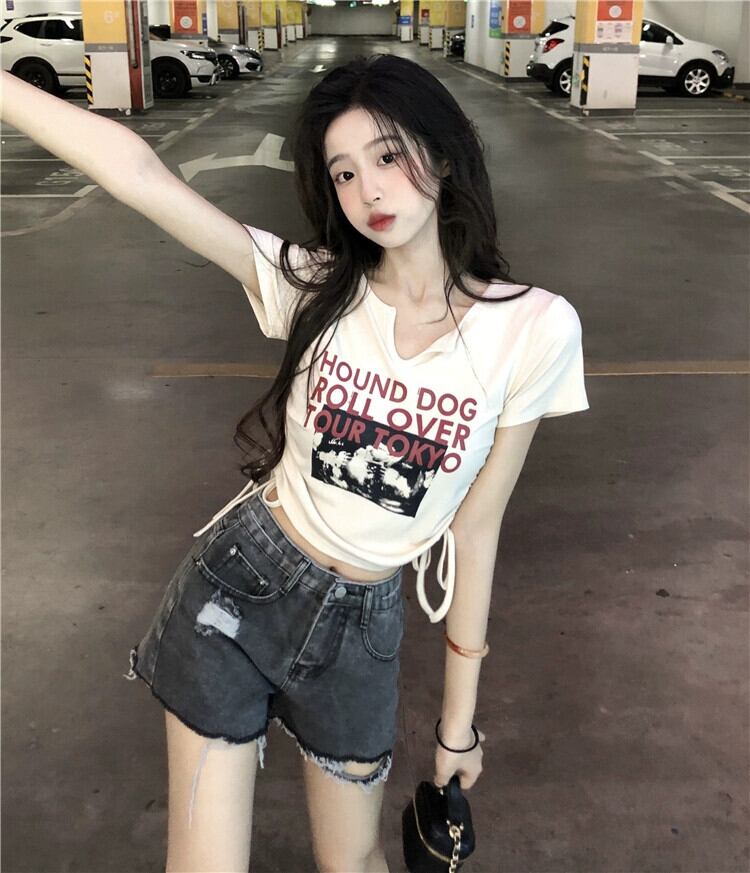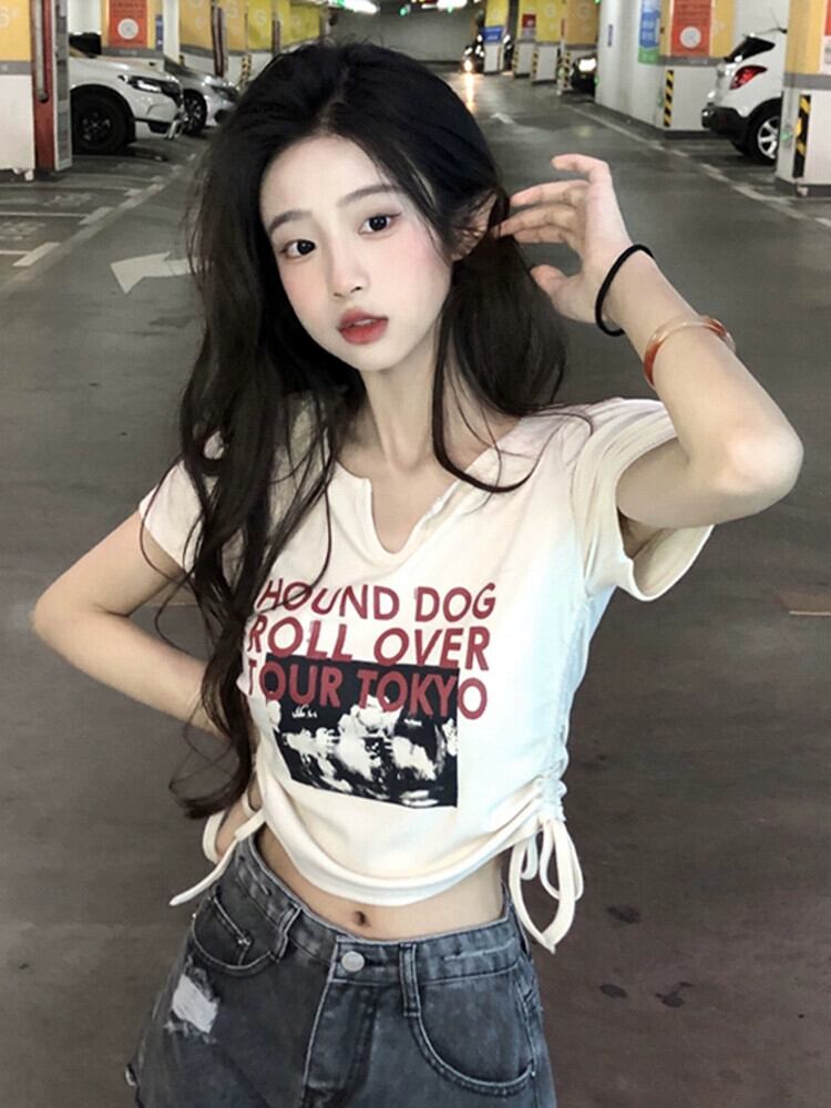 純粋な欲望のシックなショートコットン Tシャツ夏の新しいシックな甘いショルダースリム半袖トップ女性 大人ガーリー スウィート キュート カジュアル サマー 夏物 missk41871658081