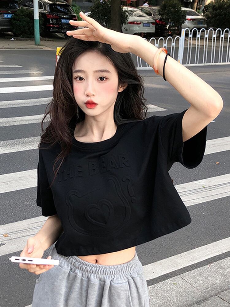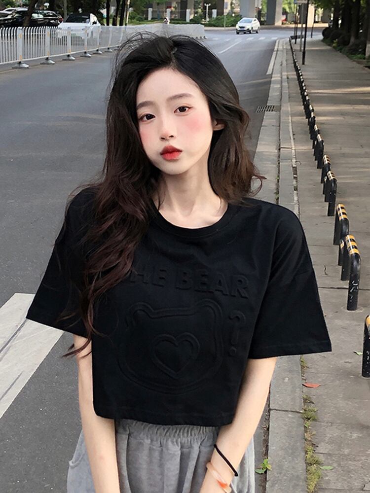 色:ホワイト立体ラブベアショートT,黒の立体ラブベアショートT