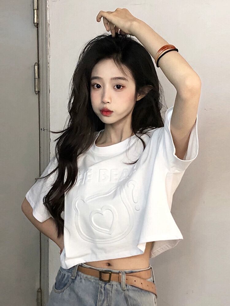 立体印刷白 Tシャツ夏 2023 新しいルーズショートコットン半袖デザイントップ女性 ホワイト サマー 夏物 missk93493419980