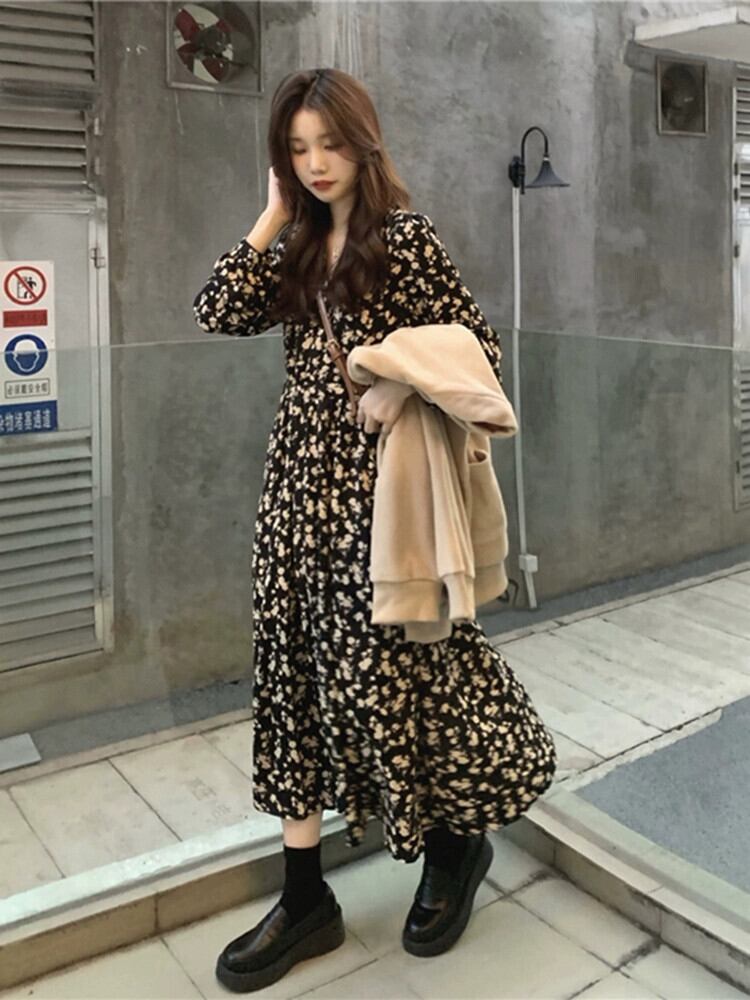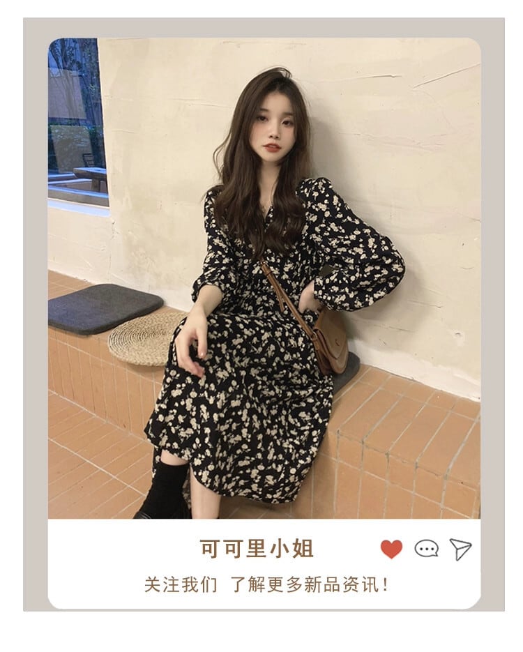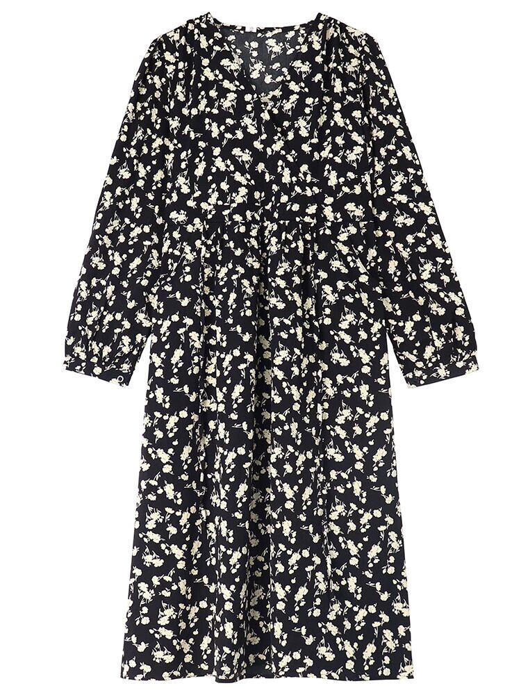 2023 新しいポケットドレスの女性の春と秋のコート付きフランスの高級感黒インナー花柄ロングスカート ブラック スプリング 春物 オータム 秋物 missk73918680352