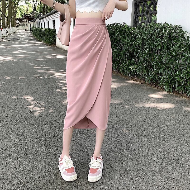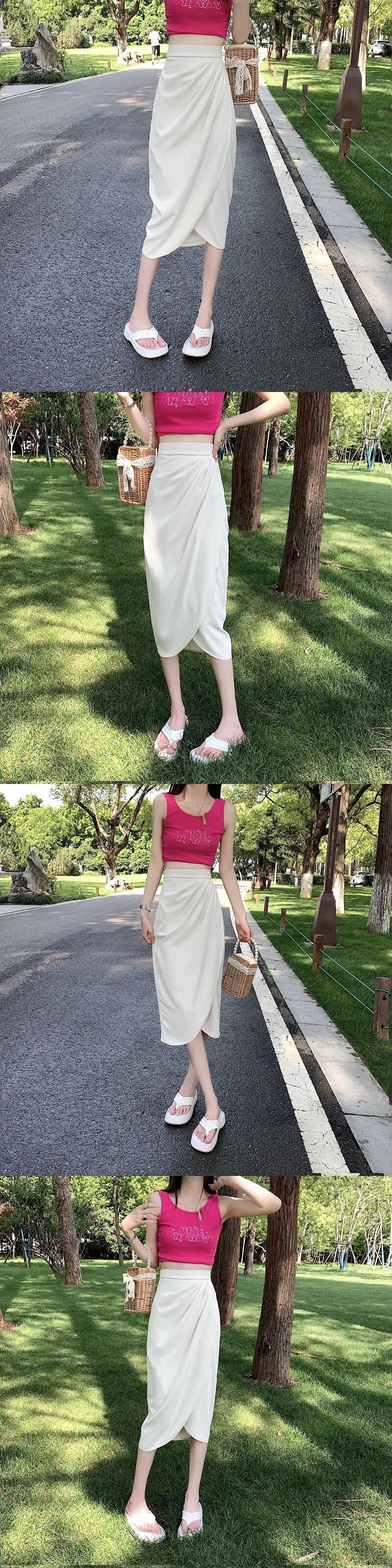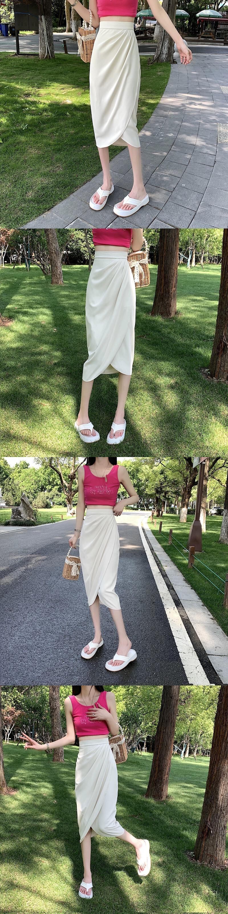 ミドル丈バッグヒップスカート不規則なしわスリットaラインスカート夏バージョン2023新しいハイウエストスカート女性 ハイウェスト サマー 夏物 missk88618024473