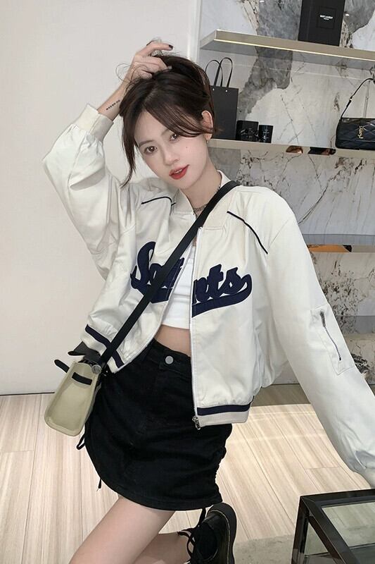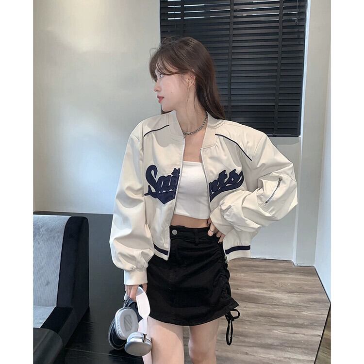 アメリカン スパイス ガールズ ベースボール レディース 2023 秋冬 ルーズ ショート ソルト ライン 長袖 ジャケット トレンディ ロング オータム 秋物 ウィンター 冬物 missk85822340413