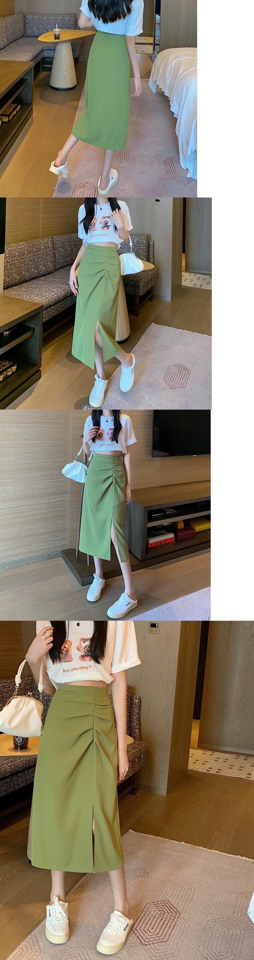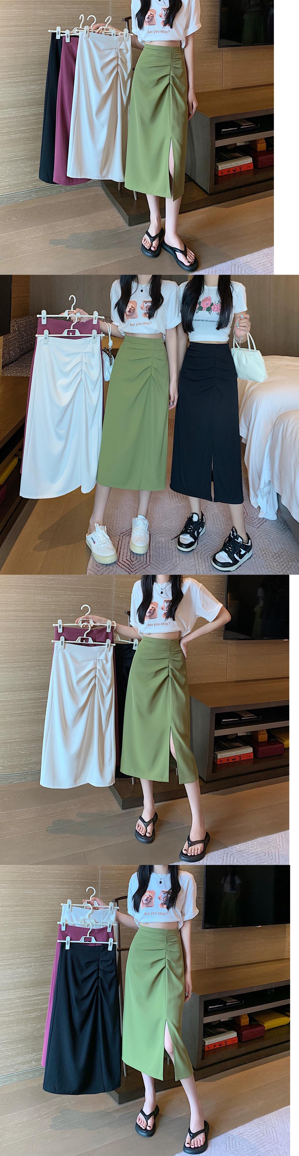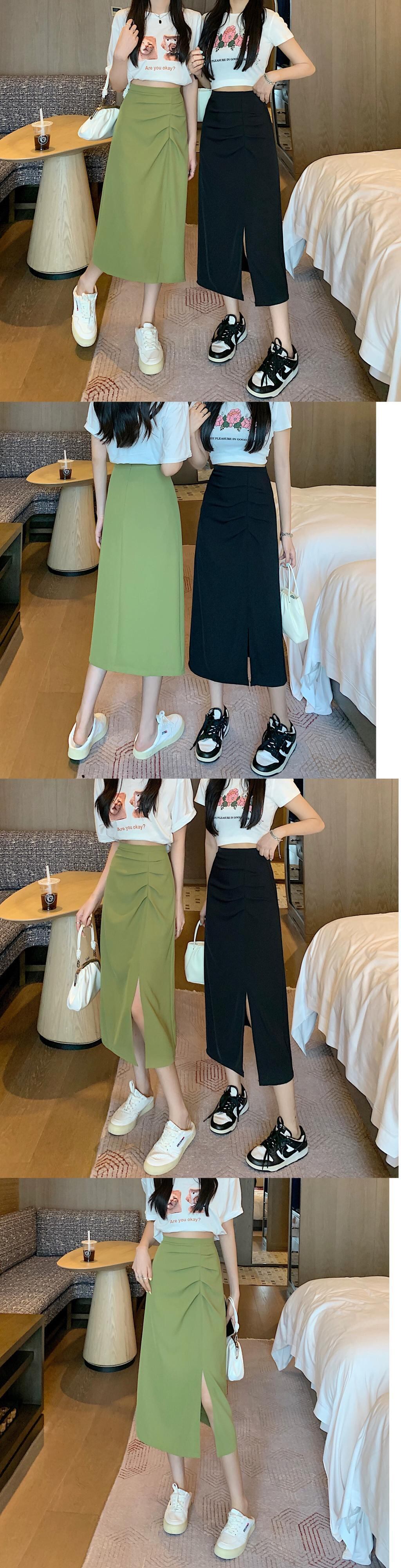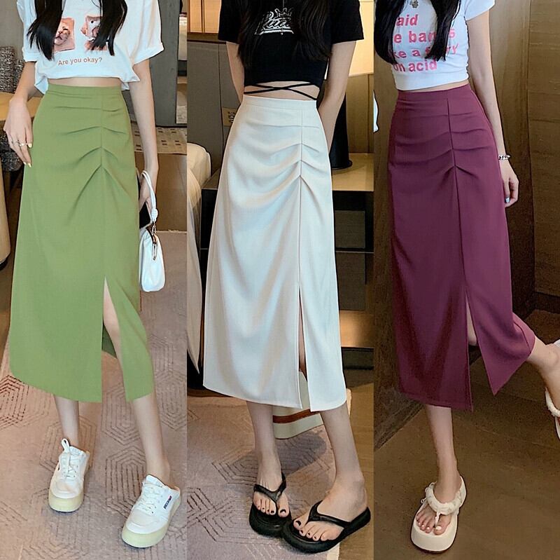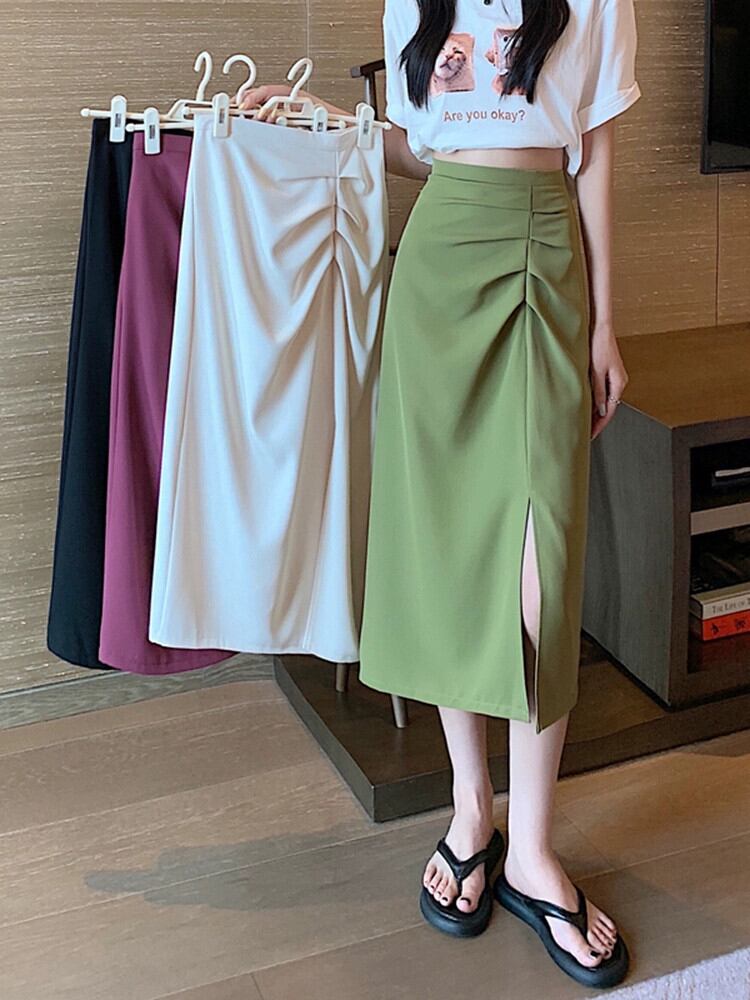 イレギュラースカートの女性の 2023 夏の新しいシックなハイウエストプリーツスリットバッグヒップスカートインミッドレングススカート ハイウェスト サマー 夏物 missk1608603305