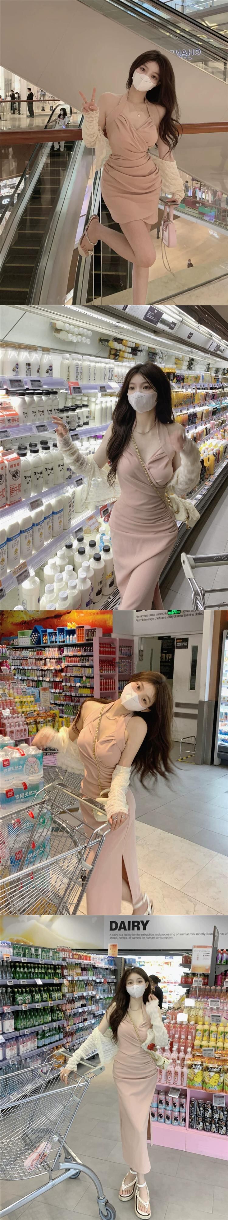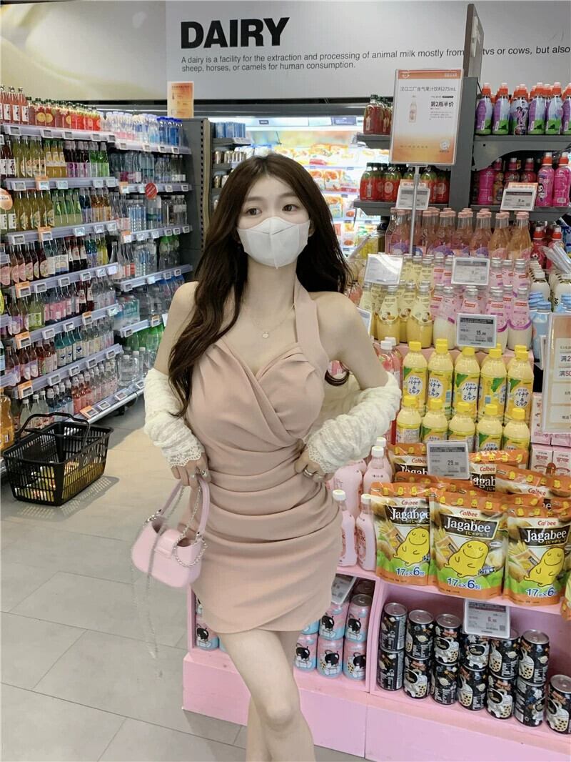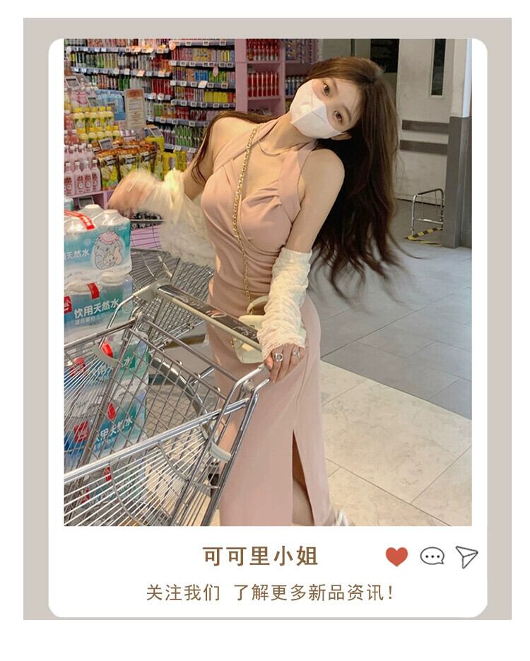 純粋な欲望風ぶら下げネックドレスの女性の夏の 2023 新しいデザインセンスセレブ気質プリーツスリットバッグヒップスカート サマー 夏物 missk75361200411