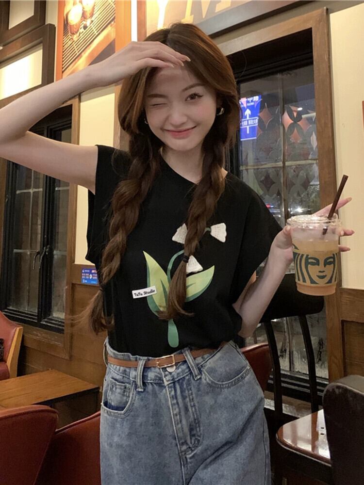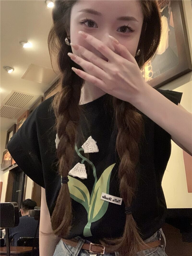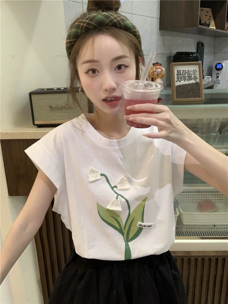 チューリップノースリーブベストTシャツ2023夏新デザインセンスシックプリントルーズYトップスイン サマー 夏物 missk12958407112