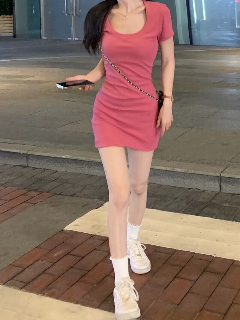 純粋な欲望スタイルのセクシーな半袖ドレスの女性の夏の新しいウエスト痩身気質バッグヒップショートスカートトレンディな サマー 夏物 missk56993518477