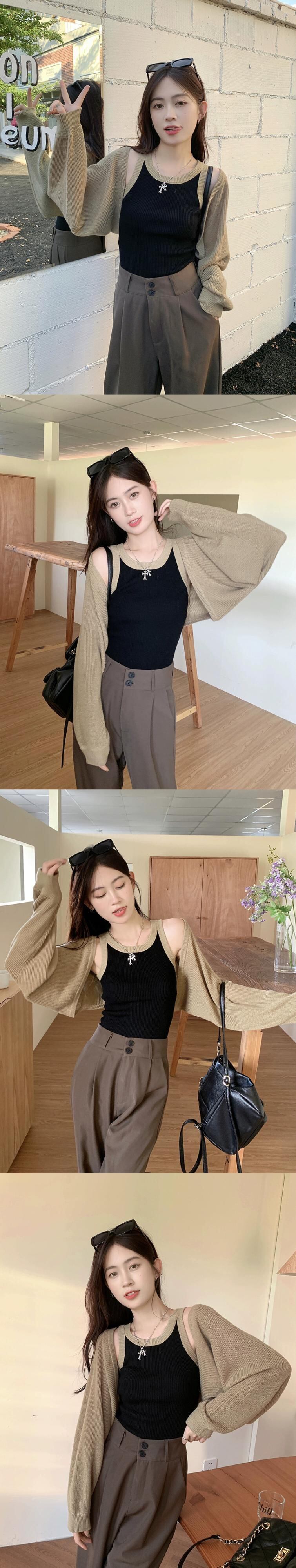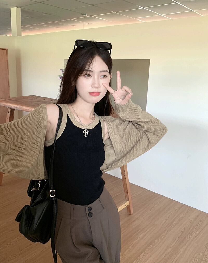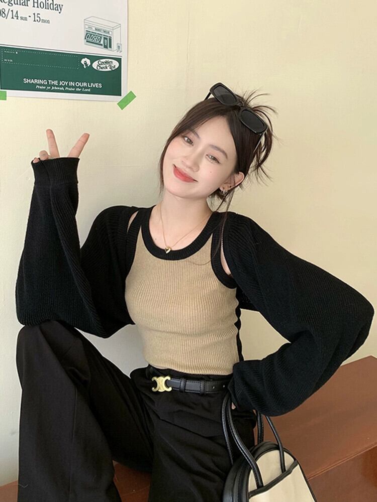 純粋な欲望長袖ニットセーターコウモリブラウス女性の夏の2023新シリーズショートブラックカーディガントップ ロング サマー 夏物 missk86830345396