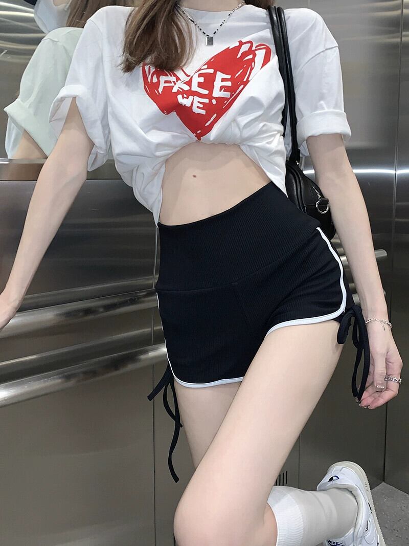 ホットスタイル巾着ショーツ夏 2023 新しいファッションハイウエストピットストリップカジュアルパンツスリム弾性女性パンツトレンド ハイウェスト エラスティック 伸縮 サマー 夏物 ブルマー missk83360263288