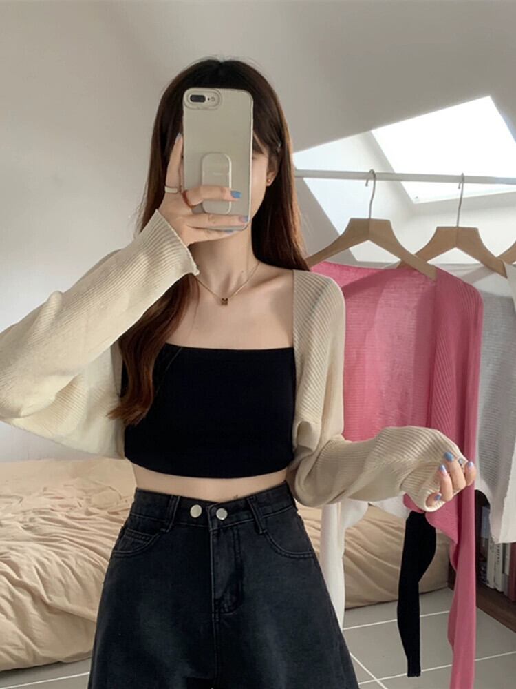 薄手の長袖日焼け止めエアコンブラウス女性の黒のカーディガントップ夏の新しいショートセクションとショールニットセーター ロング ブラック サマー 夏物 missk71470456389