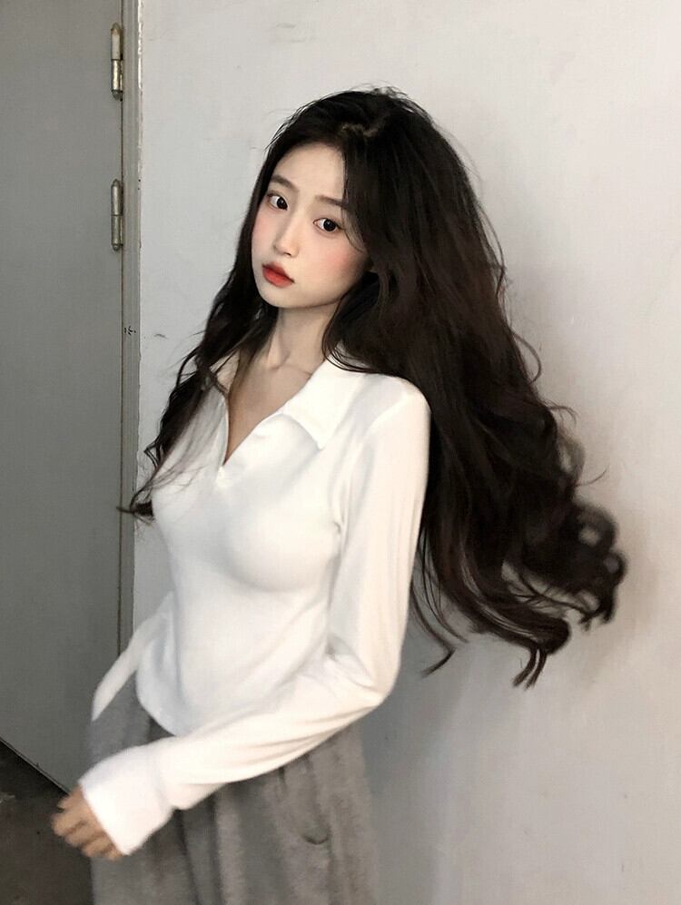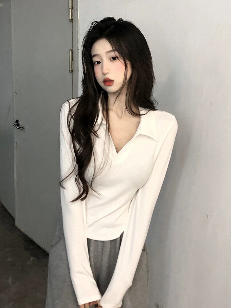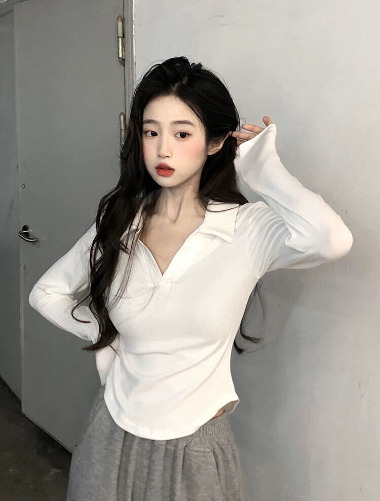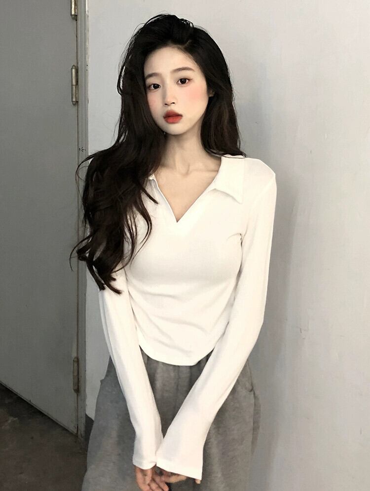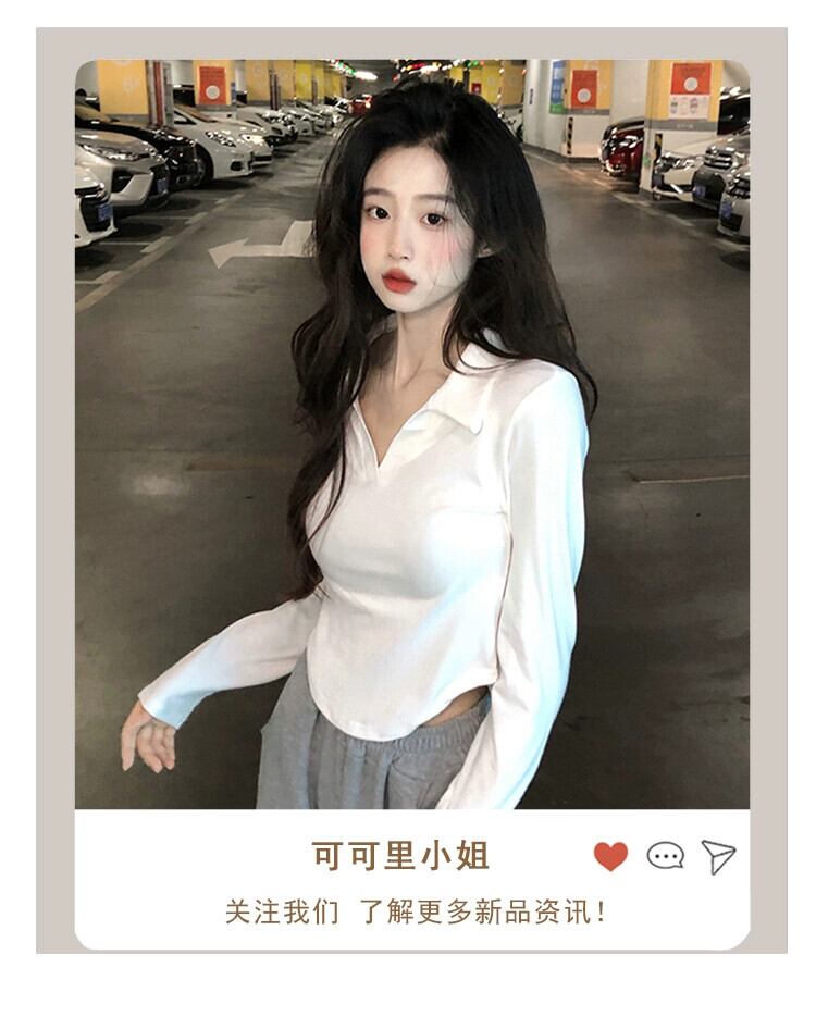 ポロカラー純粋な欲望スタイルショート長袖Tシャツレディース夏の新しいデザインセンススリムホワイトボトムストップ ロング サマー 夏物 ピュア missk54461557979