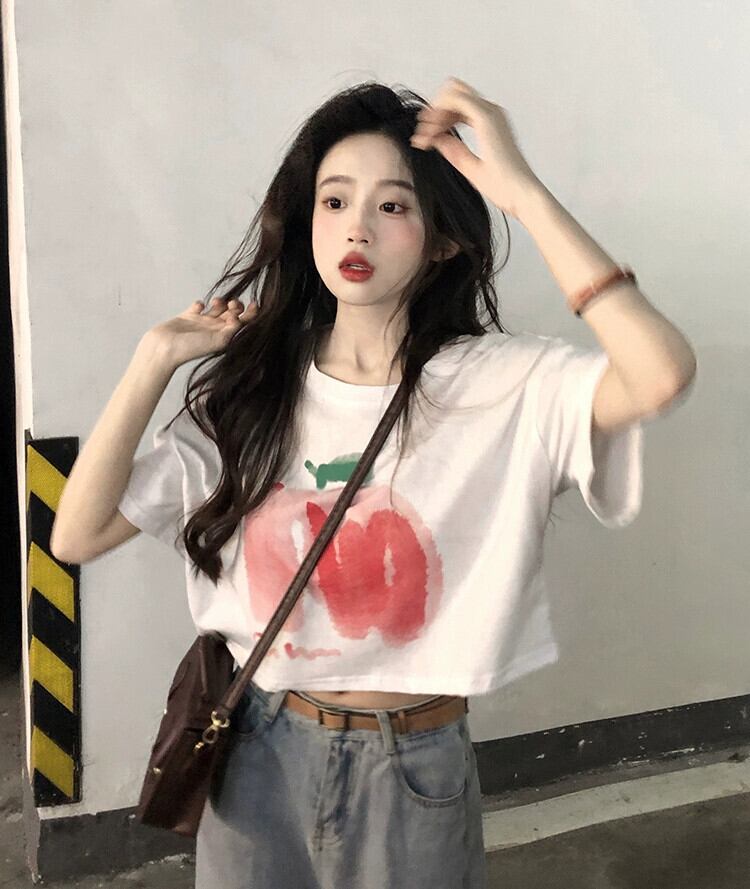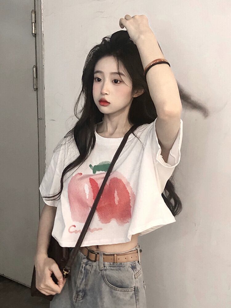 有能な年齢を減らすへそショート Tシャツ 2023 夏の新しい緩い気質インスタイル半袖白トップ女性の潮 ホワイト サマー 夏物 missk16700943462