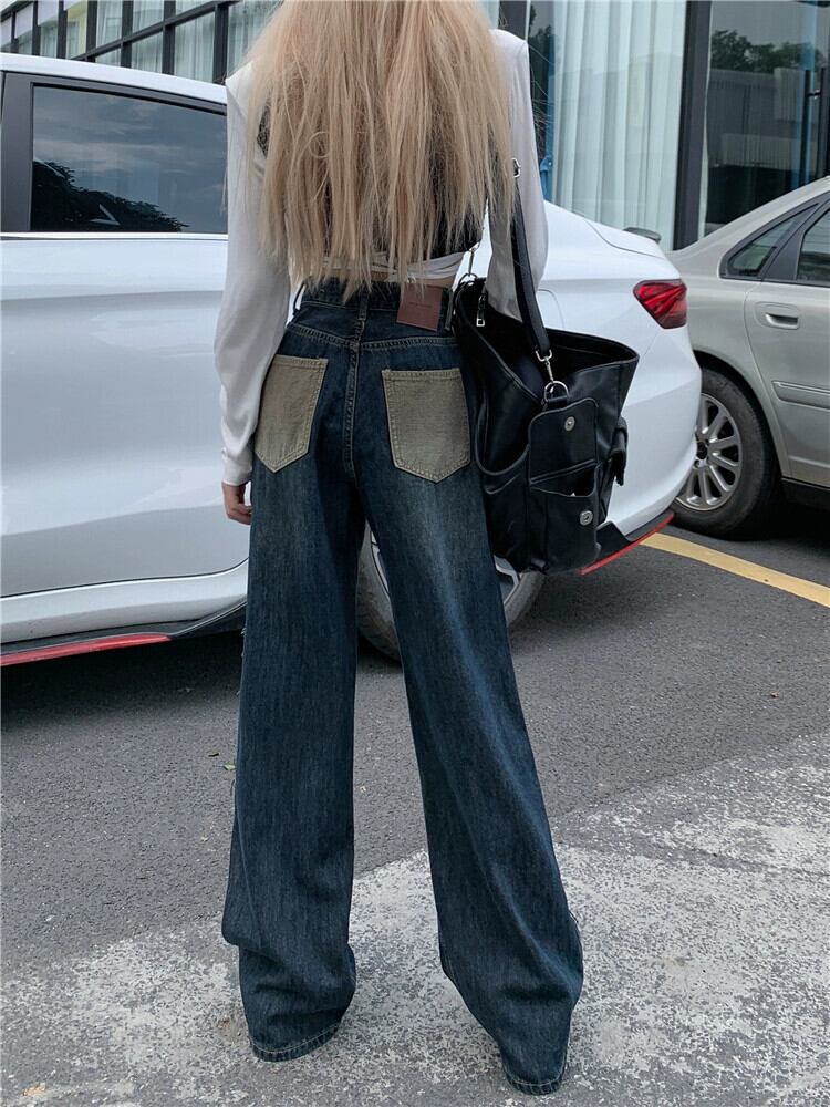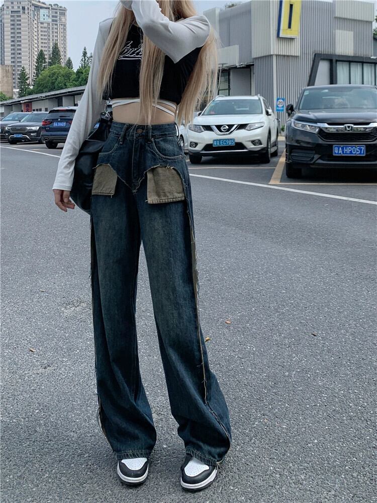センスニッチカラーコントラストステッチジーンズレディース2023夏新作ハイウエストスリムストレートワイドレッグロングパンツ ハイウェスト サマー 夏物 ワイドパンツ missk8293045458