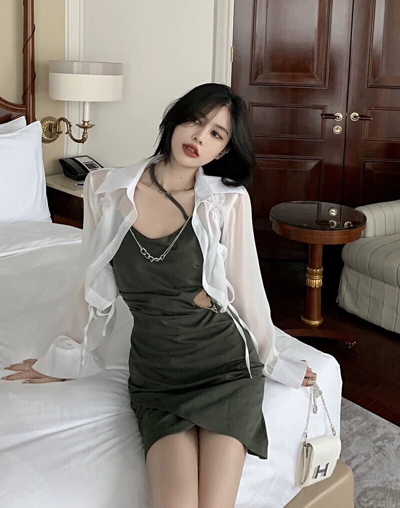 サスペンダードレスの女性の 2023 夏の新しいスタイルのレトロな香港スタイルのデザインセンススリムフィット薄型パッケージヒップスカート サマー 夏物 missk91709470688