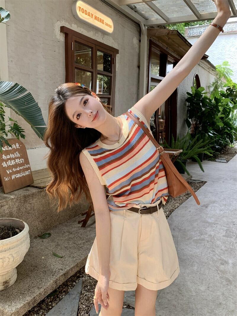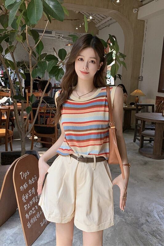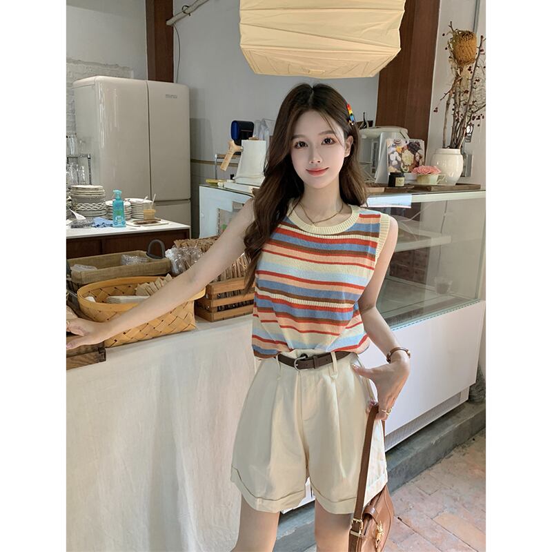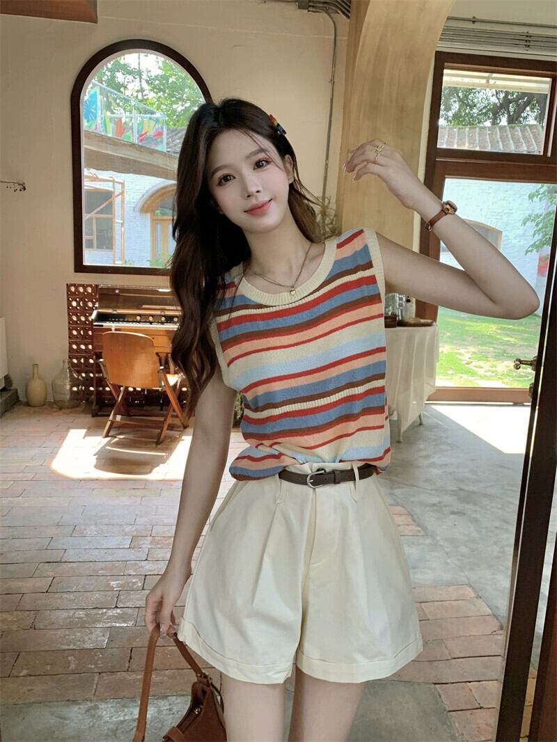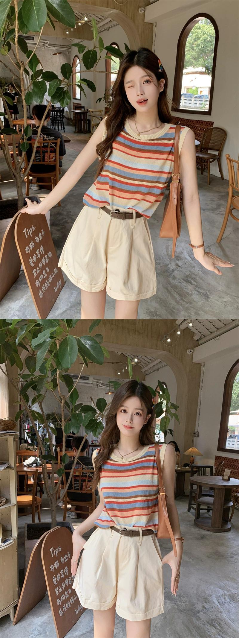 色:カラーストライプベスト,アプリコットショーツ