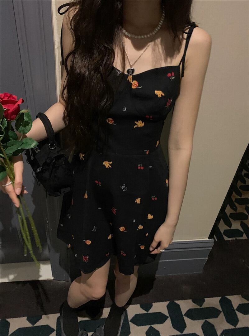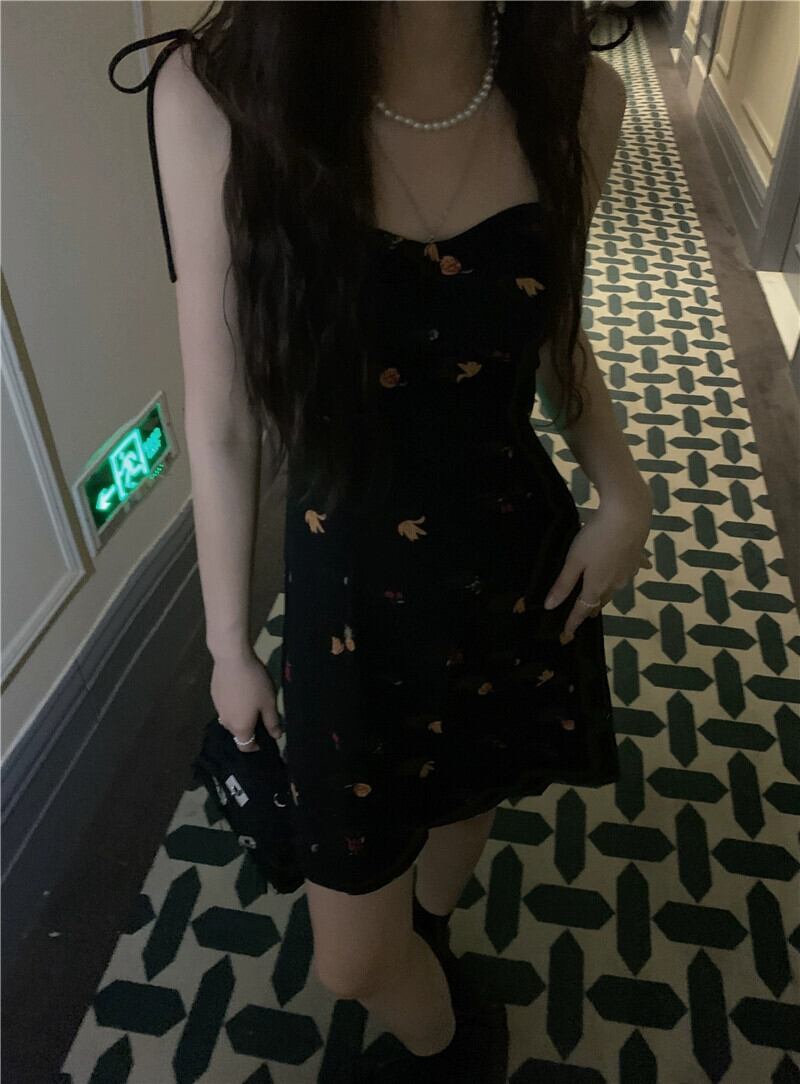 フランスの甘くてスパイシーな花柄スリングドレスの女性の夏の 2023 新しいウエストスリムレトロな気質リトルブラックスカート 大人ガーリー スウィート キュート カジュアル サマー 夏物 missk30140179641