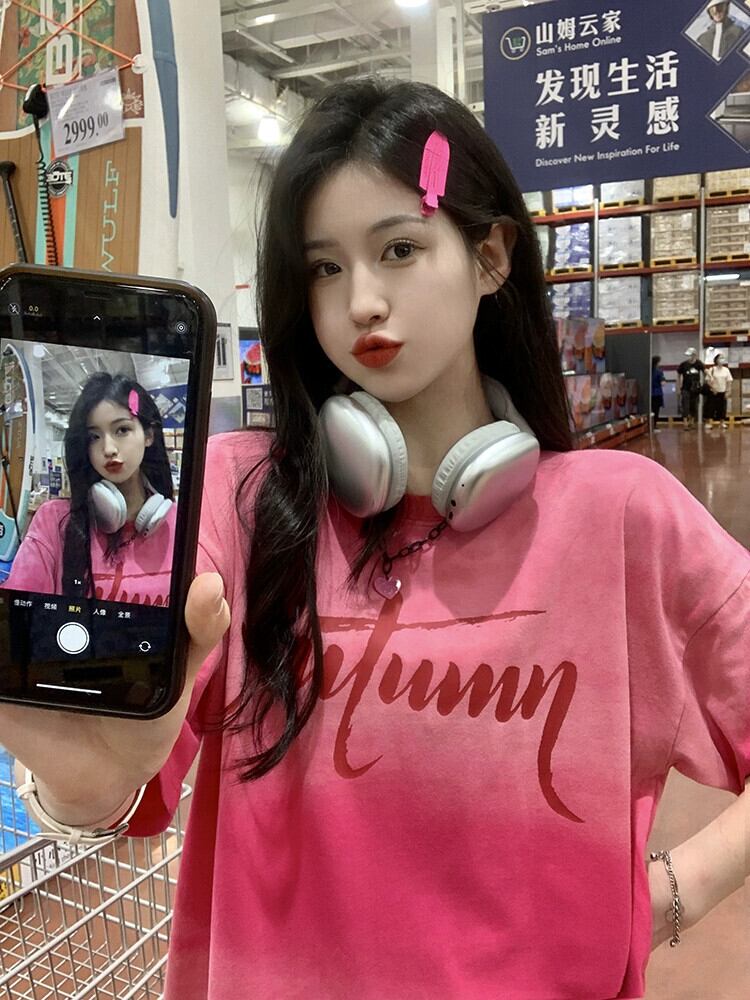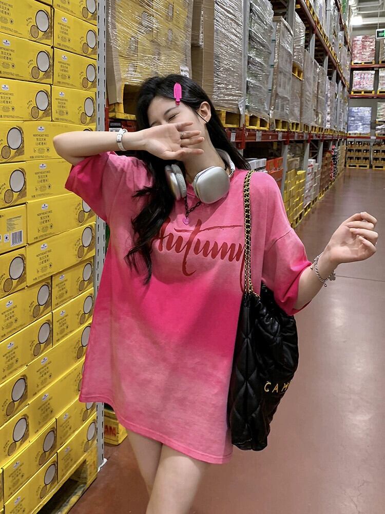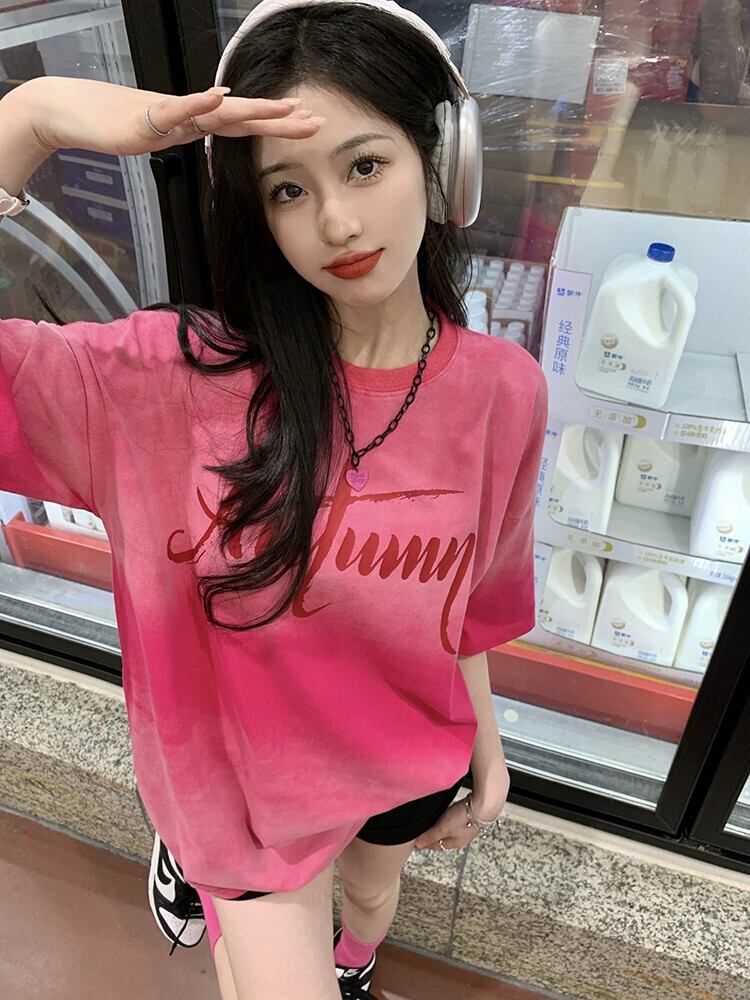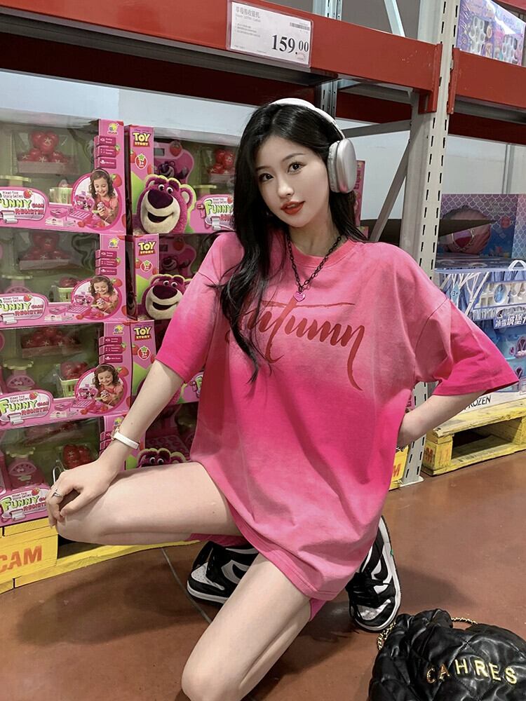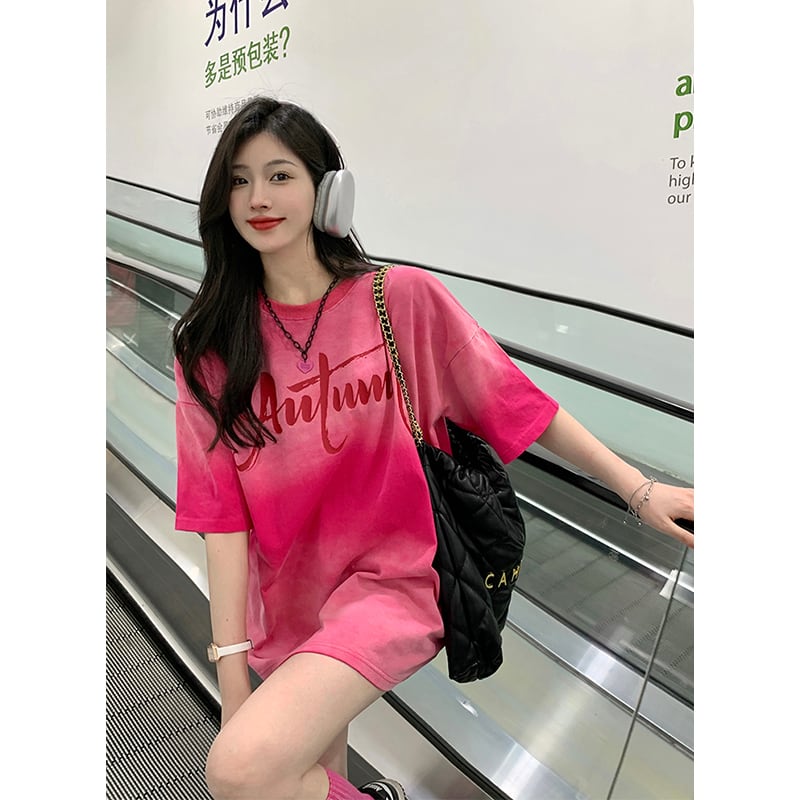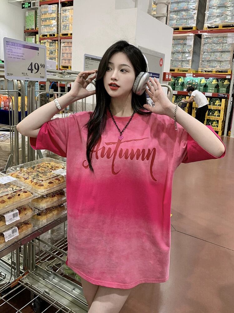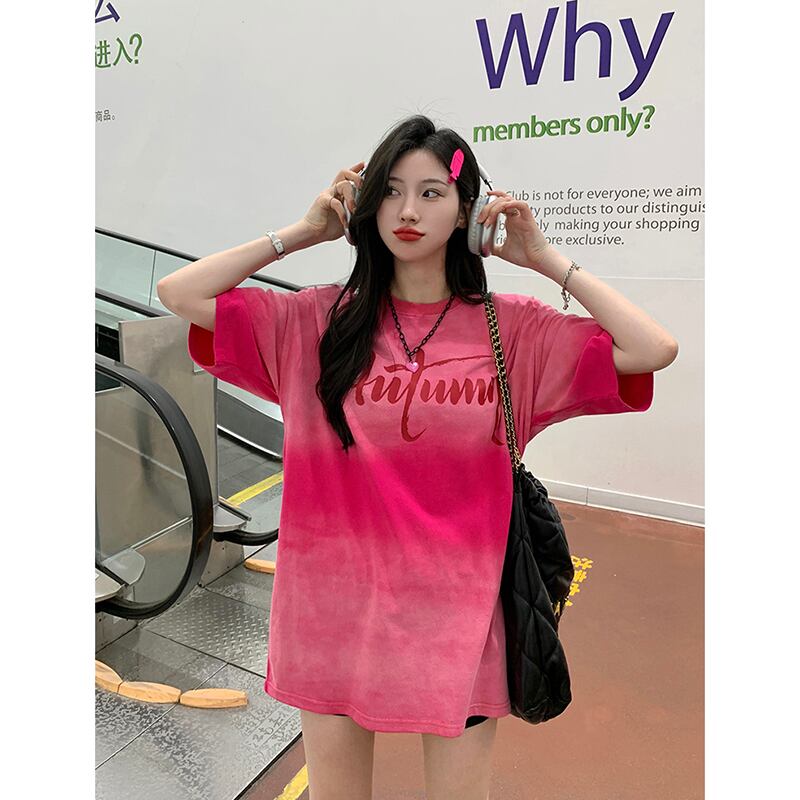 ドーパミングラデーションカラー半袖 Tシャツ夏の新しい絞り染めレトロ古風なデザインのミドル丈トップ婦人服 サマー 夏物 missk80973623085