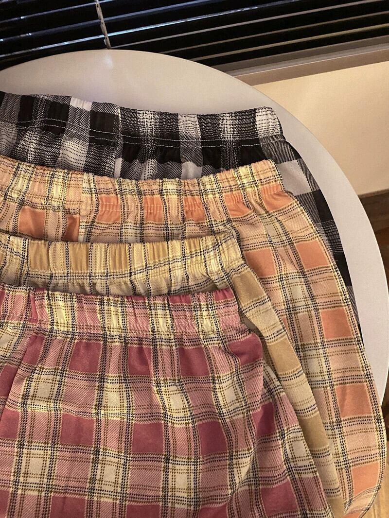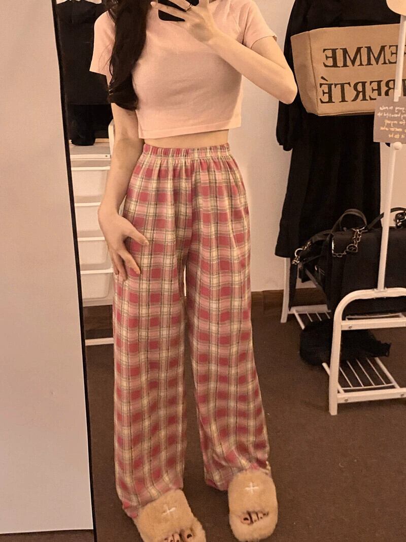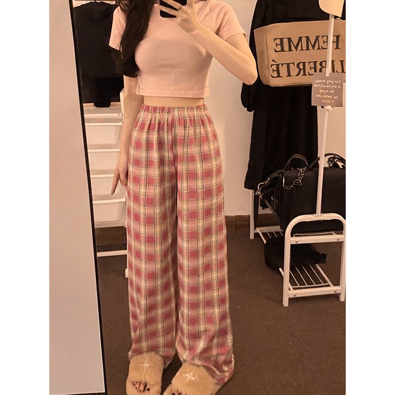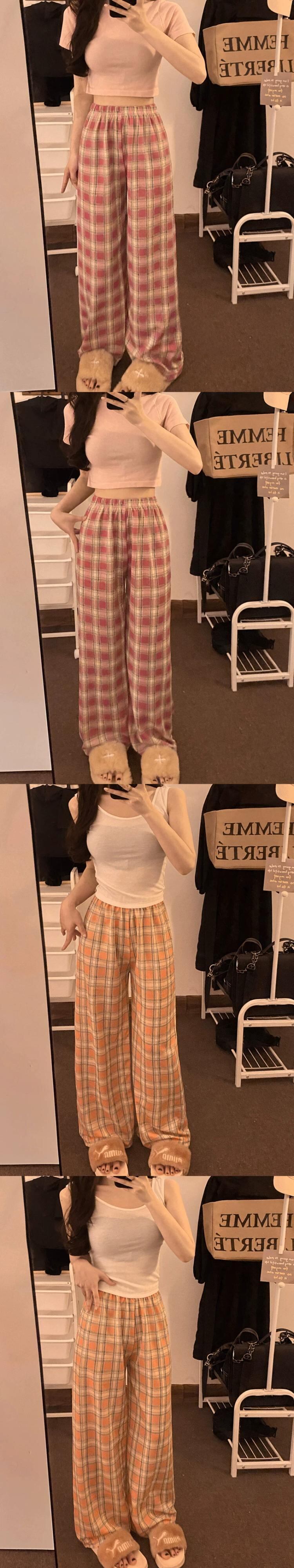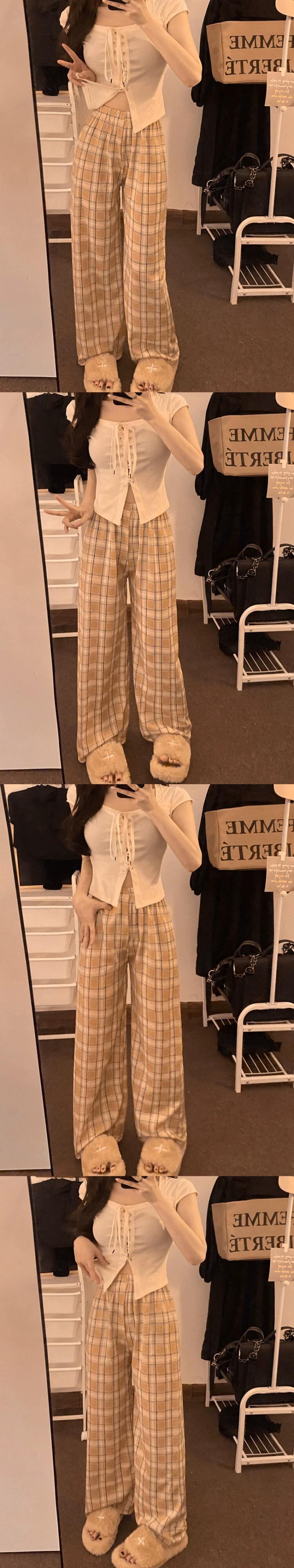 ドレープチェック柄カジュアルワイドレッグパンツレディース夏新レトロハイウエスト薄いオールマッチストレートパンツシック ハイウェスト サマー 夏物 missk21339397722