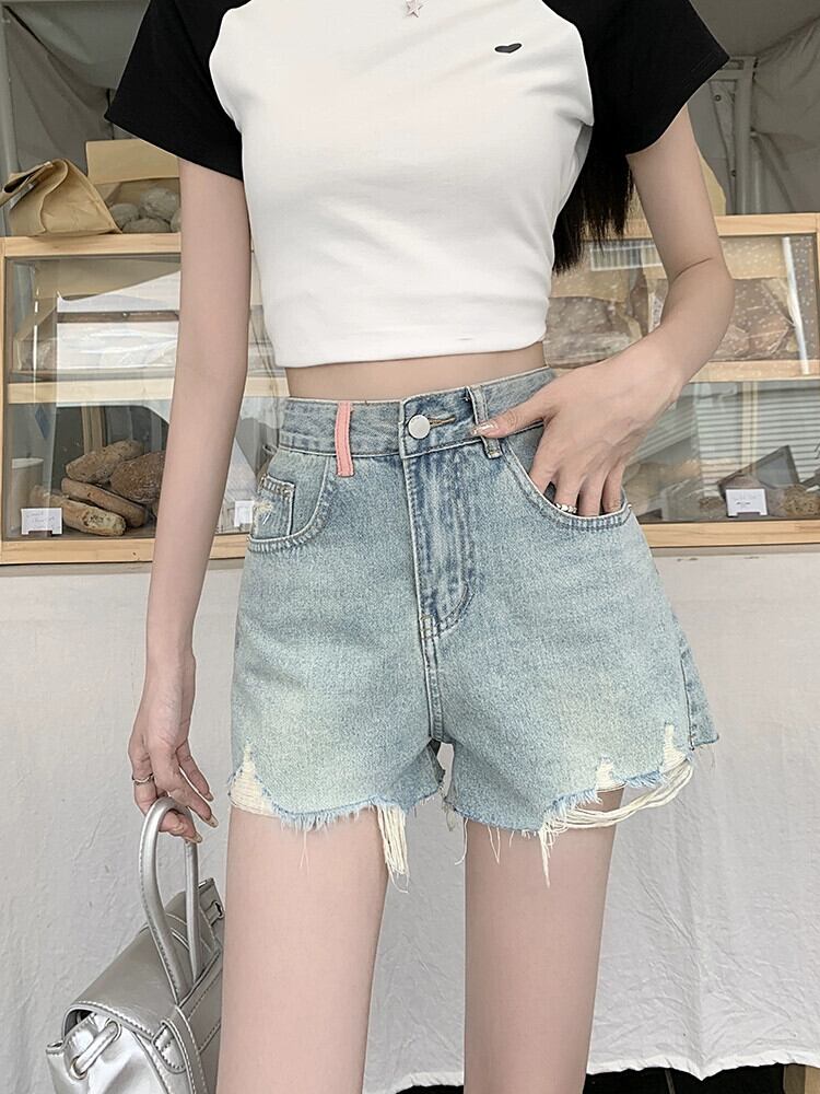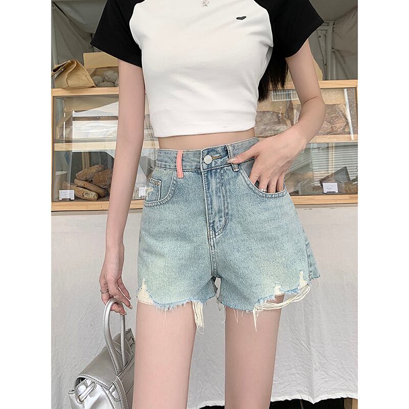 刺繍フリンジデニムショートパンツレディース夏バージョン2023新作ハイウエスト着痩せデザインセンスワイドレッグパンツ ハイウェスト レッド サマー 夏物 ショーツ ブルマー ワイドパンツ missk63973311673