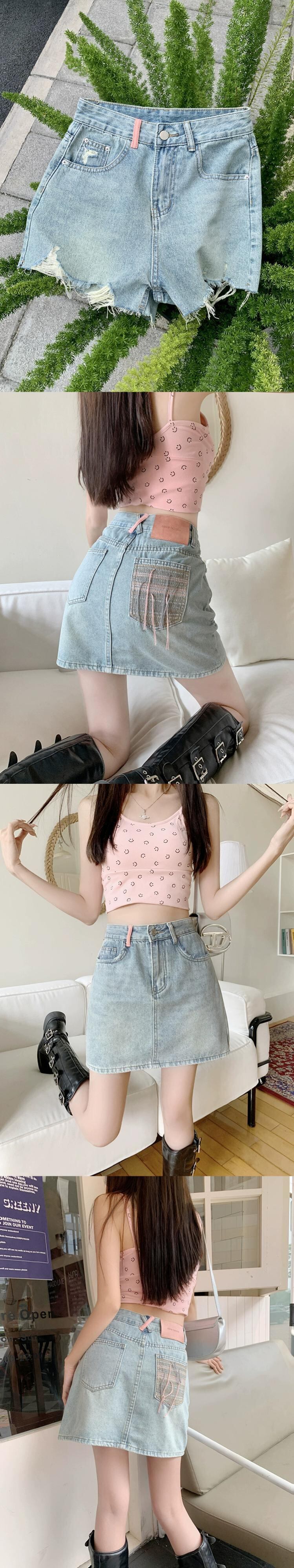 色:ブルーショートパンツ,青いスカート