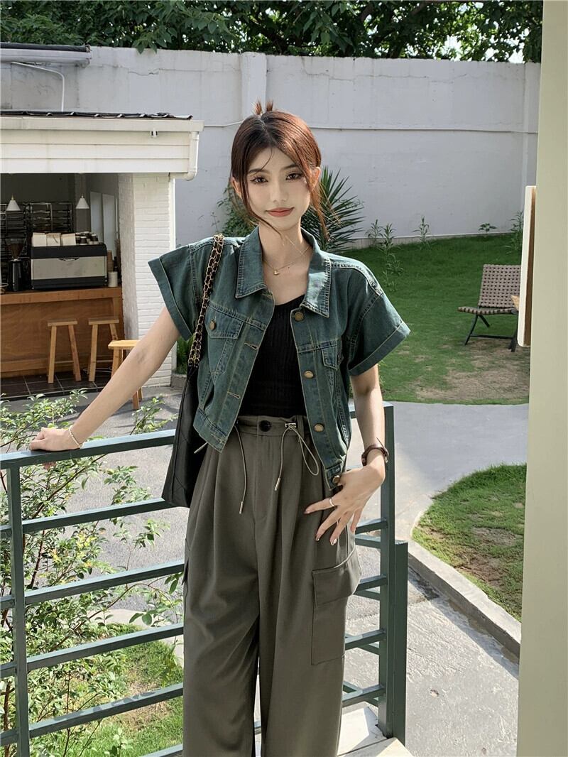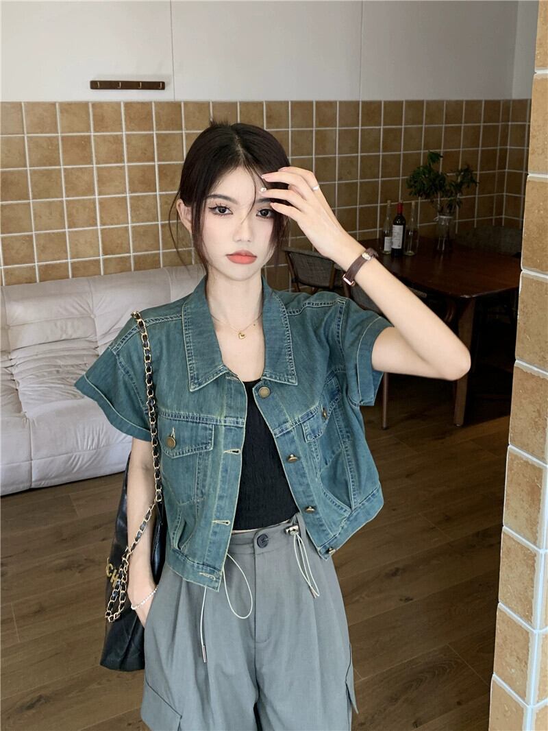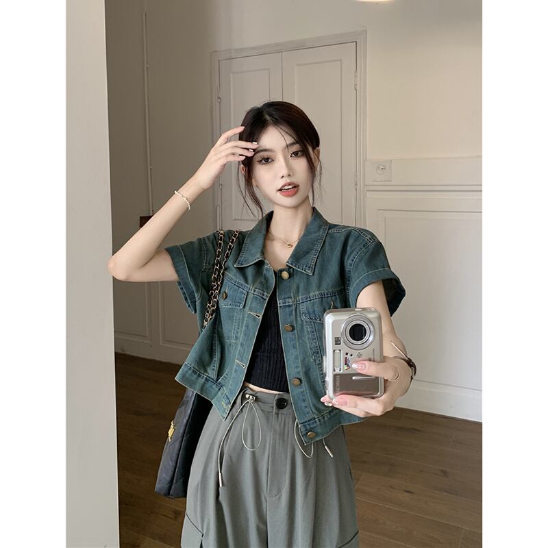 レトロショートデニムジャケット夏2023新しいデザインセンスニッチ半袖塩カーディガントップ女性イン サマー 夏物 missk82121246321
