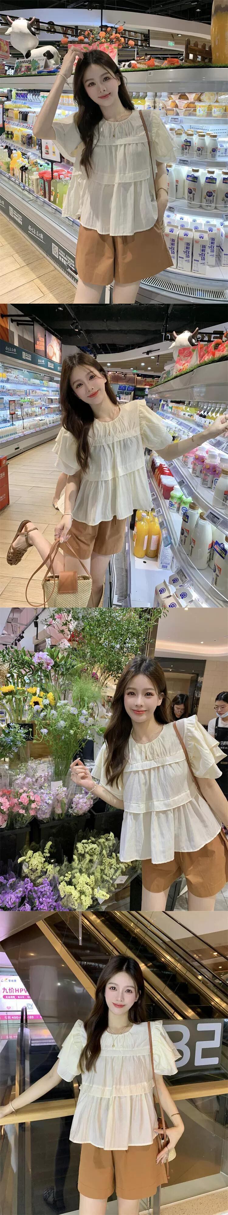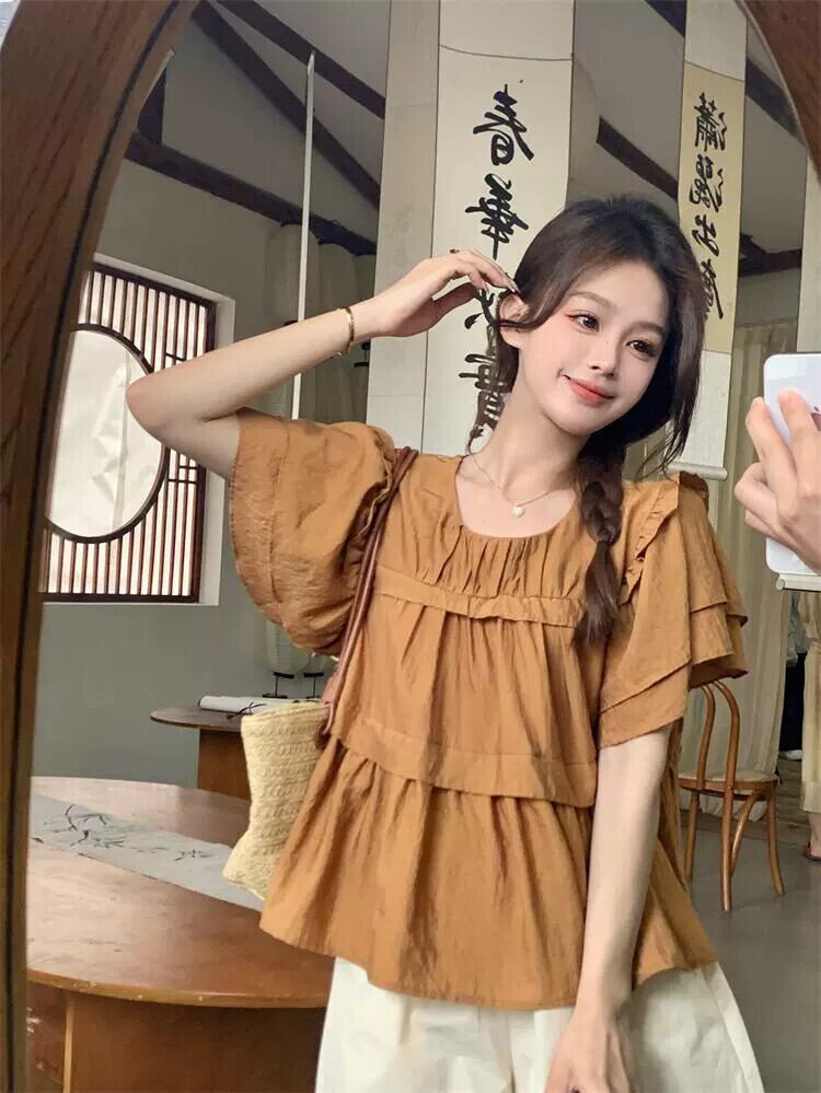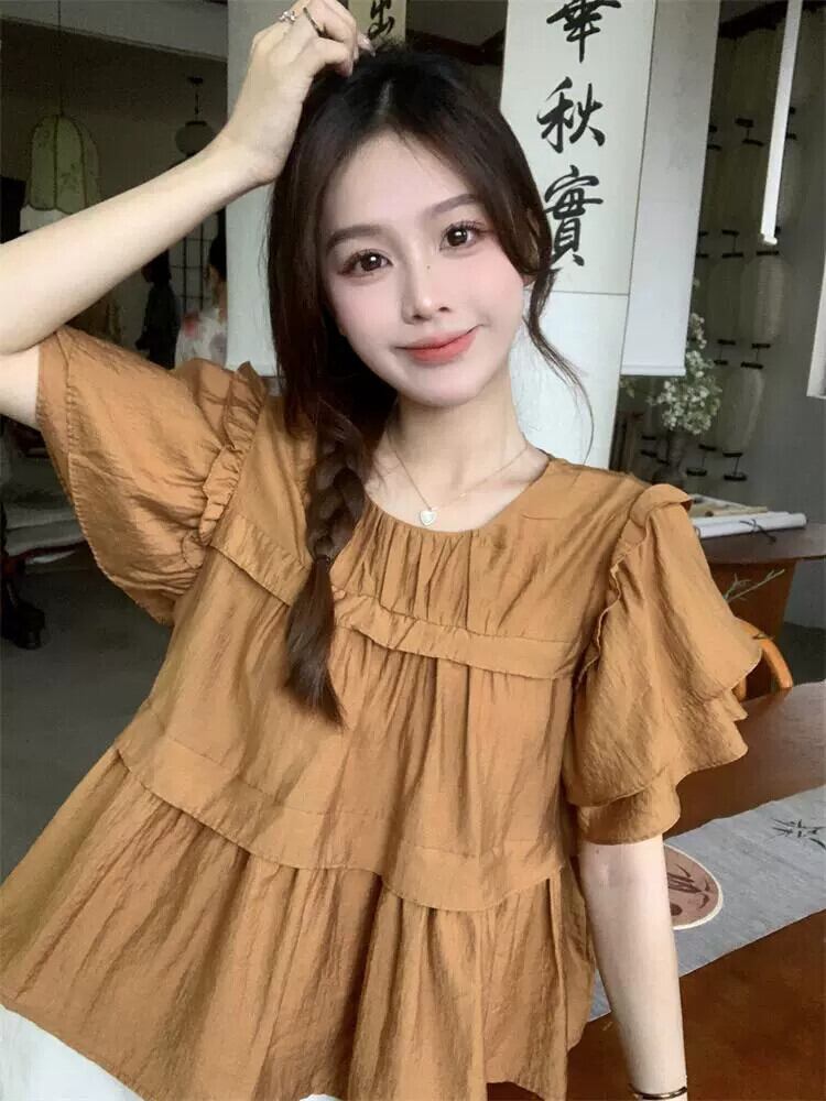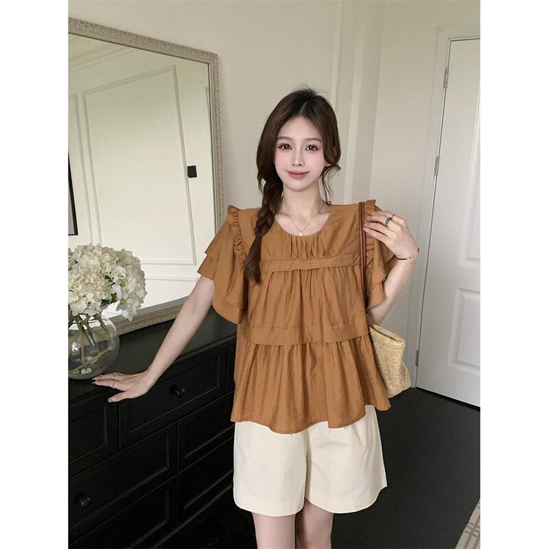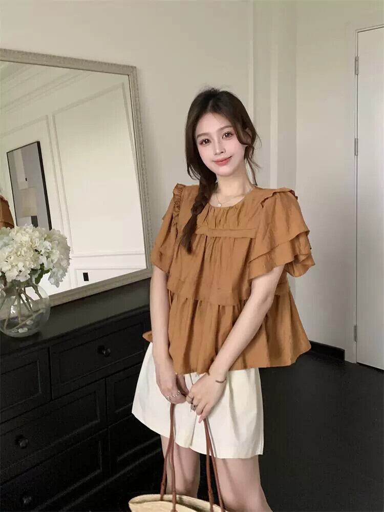 フリル半袖シャツトップス夏新レトロ緩いステッチデザイン感の薄いシックなシャツ サマー 夏物 missk20922675022