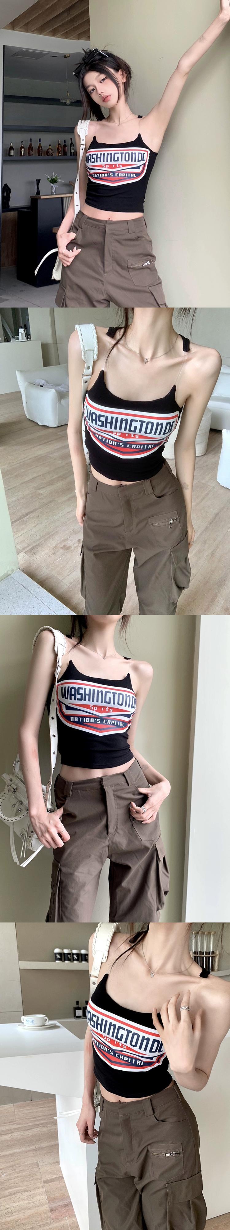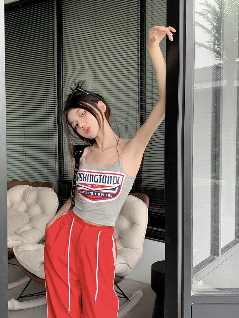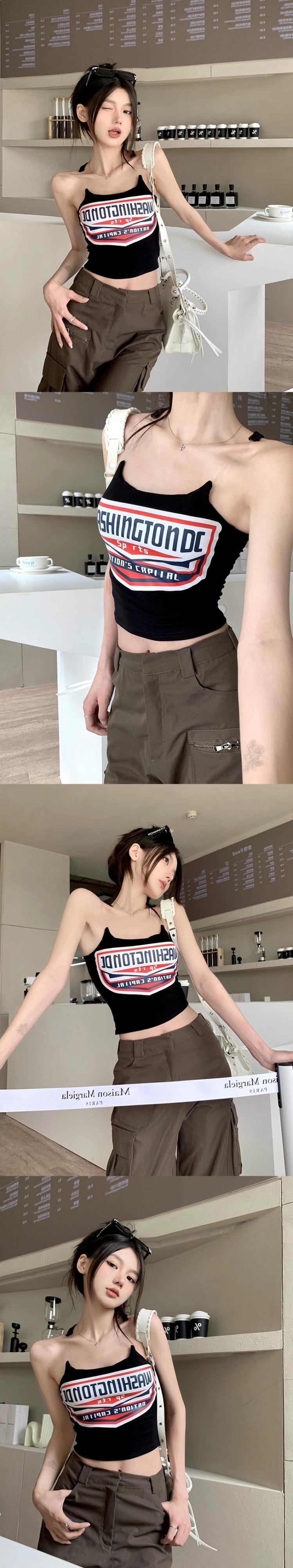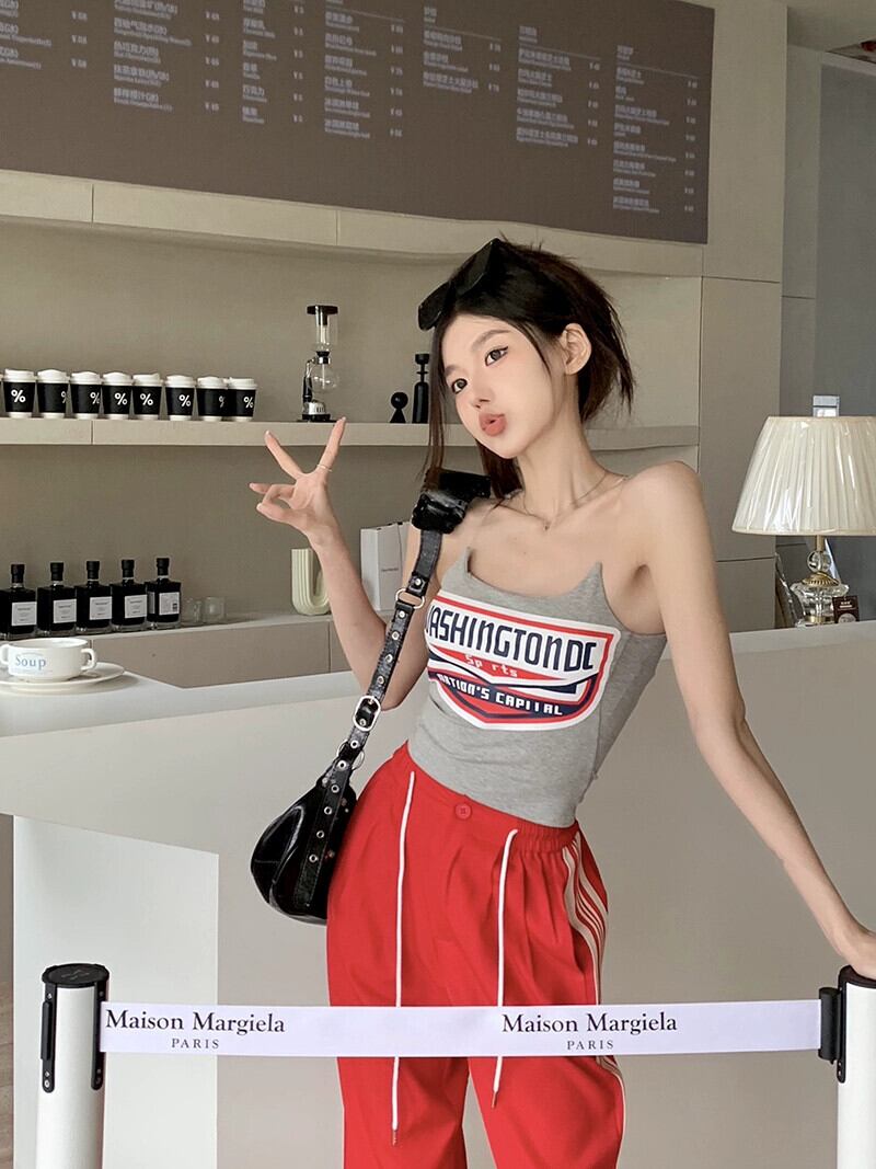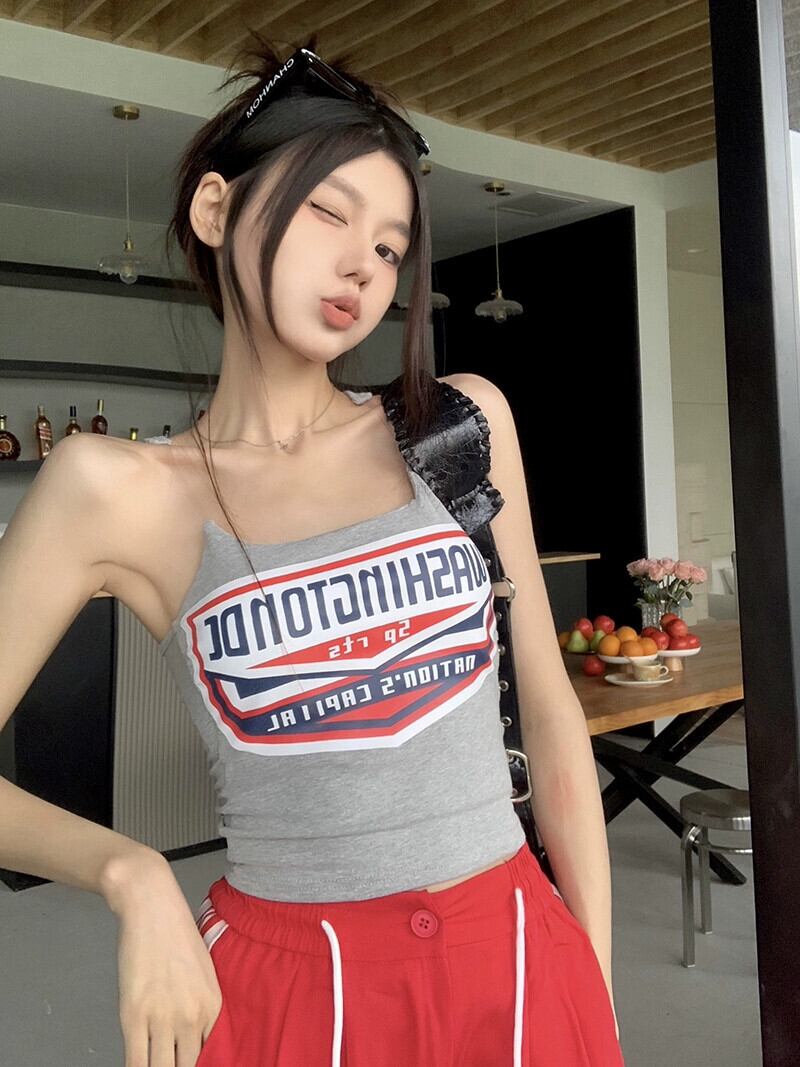 スパイスガールスタイル見えないショルダーストラップベスト女性の夏フランス語レタープリントショート美しいバックラップ胸キャミソールトップ サマー 夏物 missk96200794942