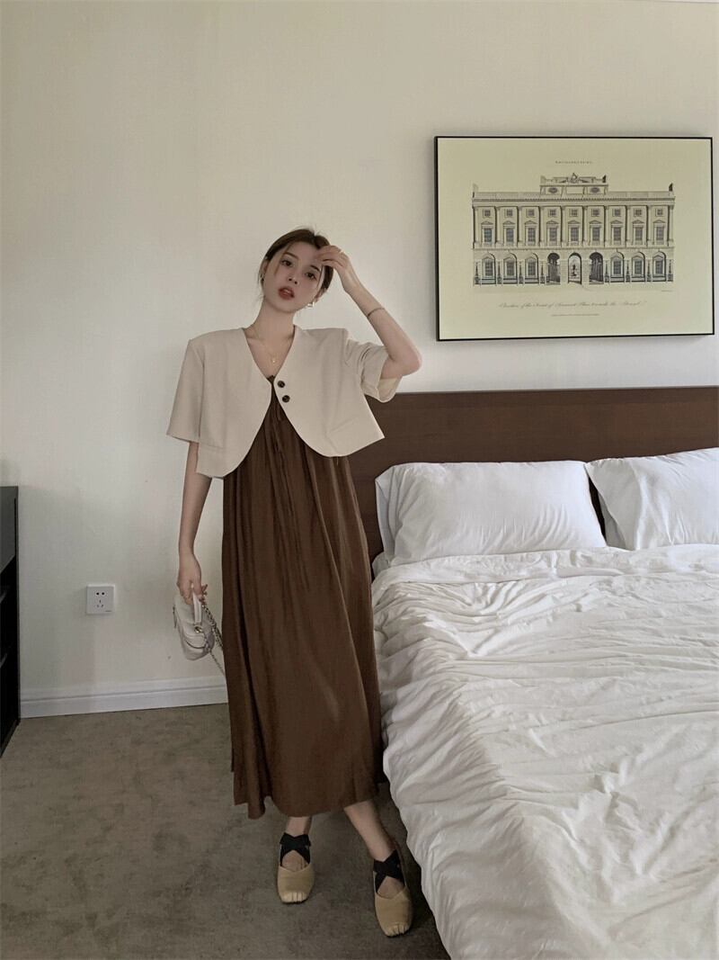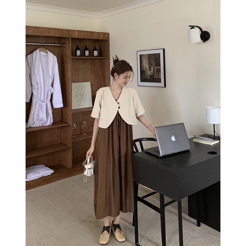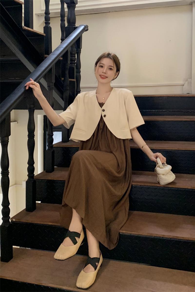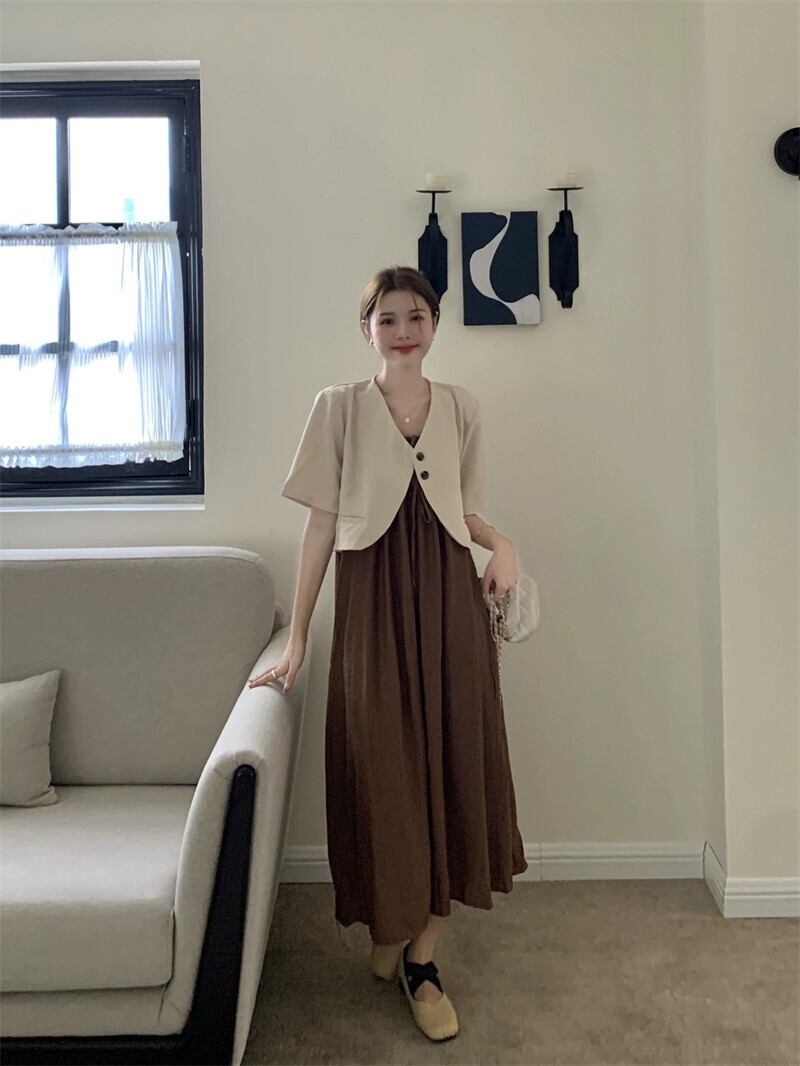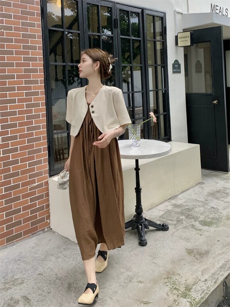 ショートスタイル半袖小さなスーツルーズサスペンダードレスロングスカート女性の夏の2023新しいファッションツーピースセット サマー 夏物 missk90712639576