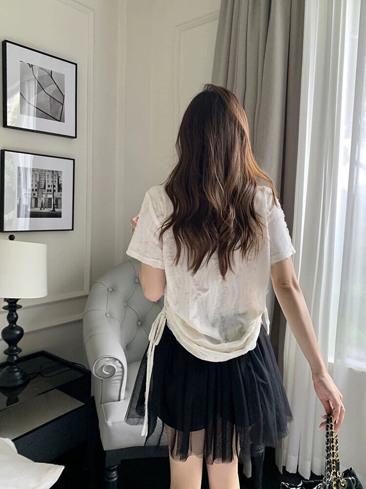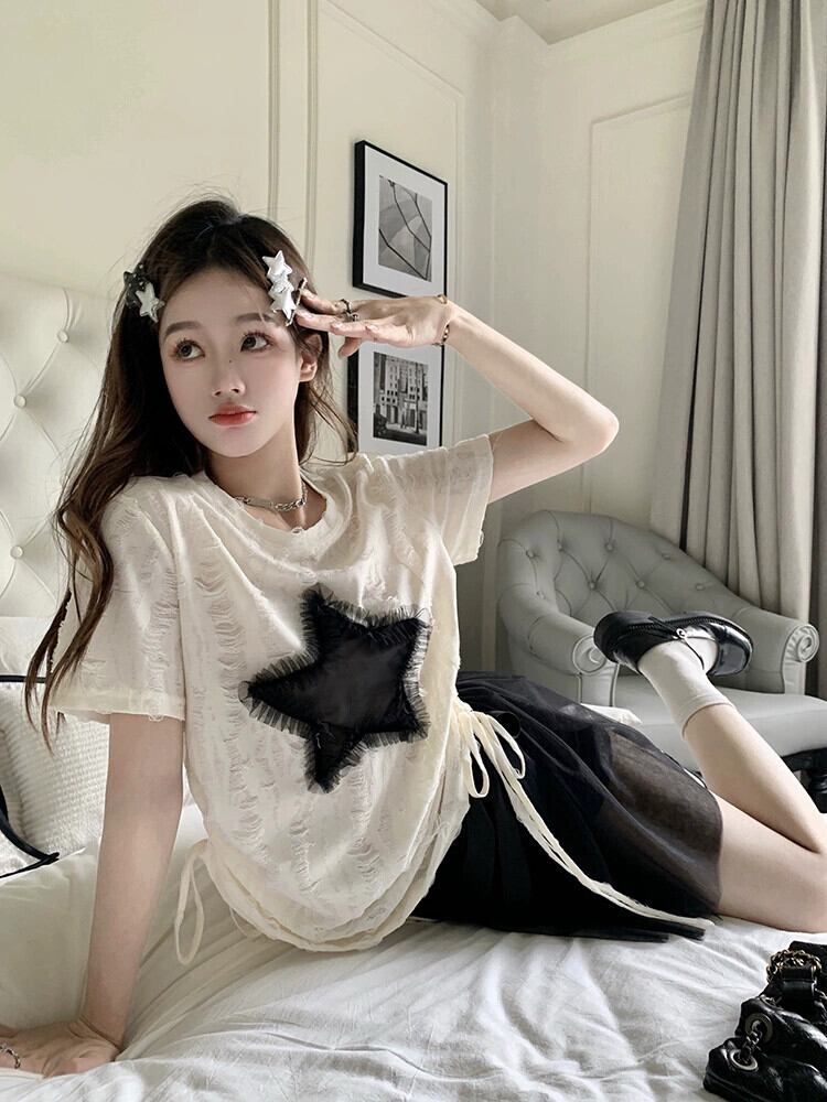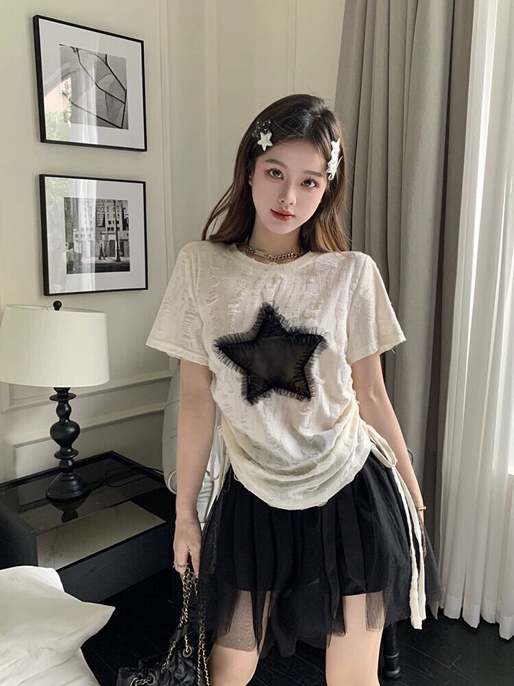 巾着スター半袖 Tシャツレディース夏の新しいアメリカンスタイルスタイルのデザインセンスアインスタイルニッチシックトップトレンド サマー 夏物 missk73235060710