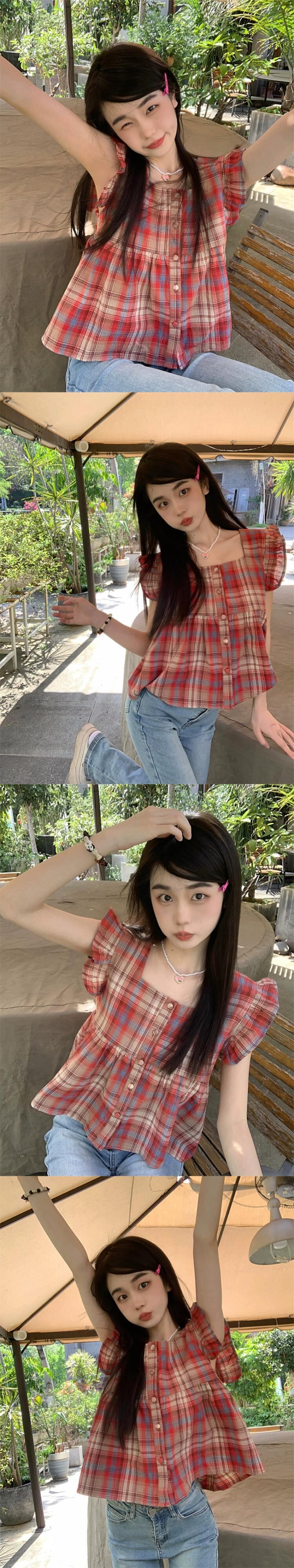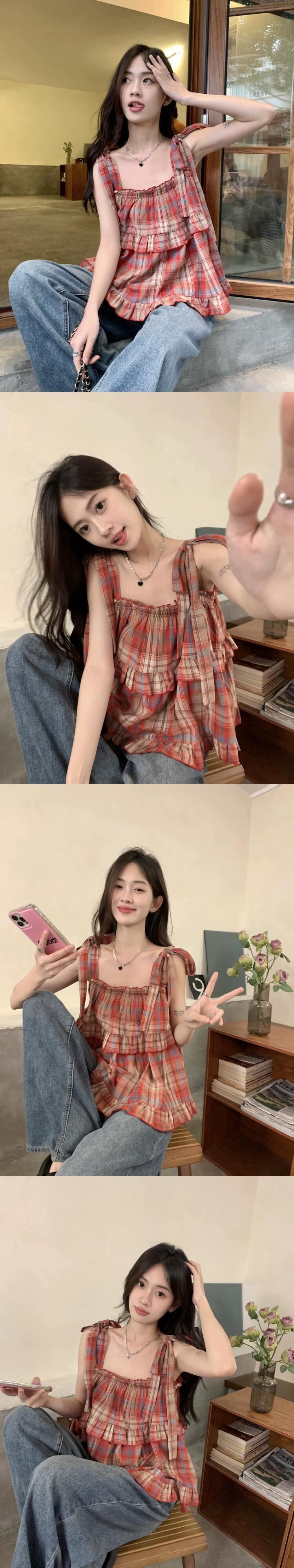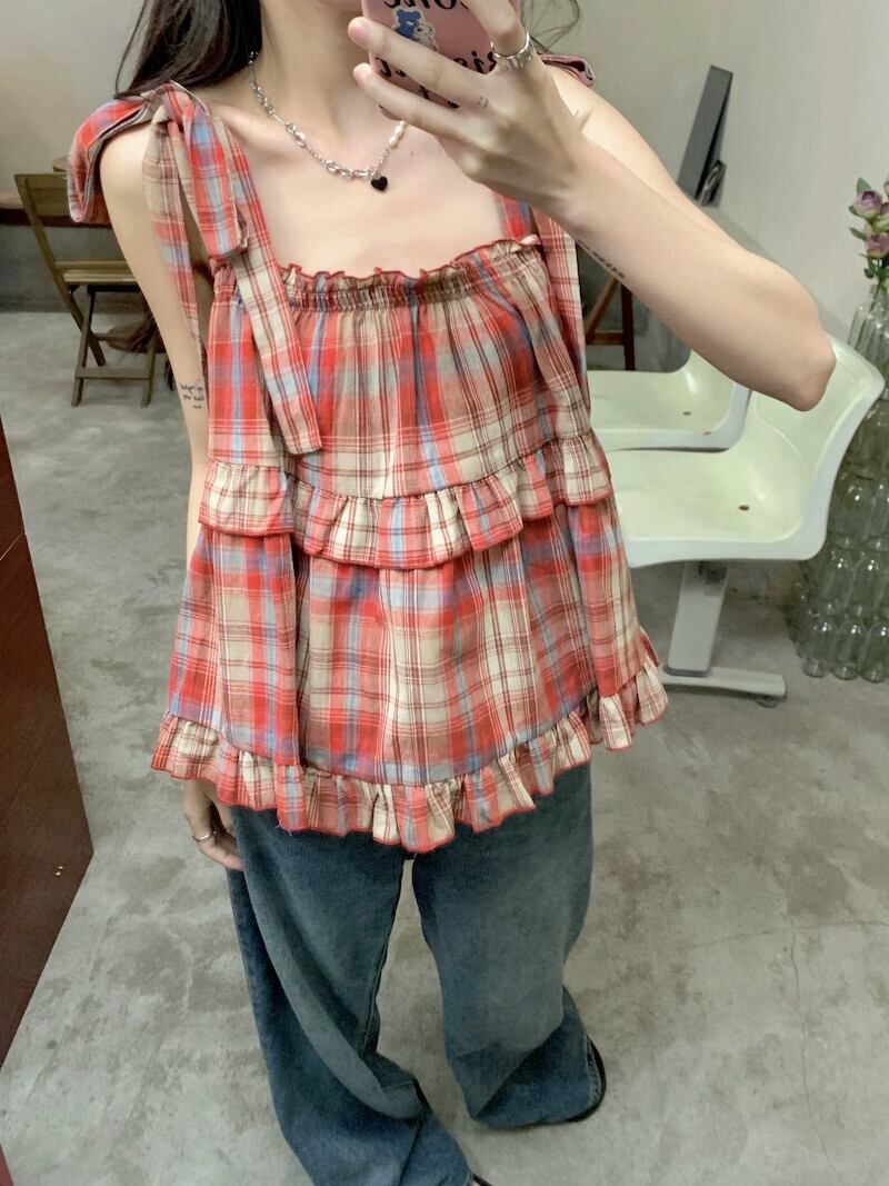 西洋風のチェック柄ショートノースリーブアウターウェア小さなサスペンダー夏甘いドーパミン着用気質ベストトップ女性 半袖 ハーフスリーブ 大人ガーリー スウィート キュート カジュアル サマー 夏物 missk66063936619