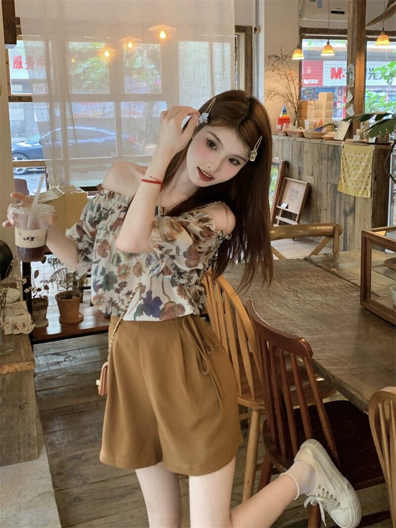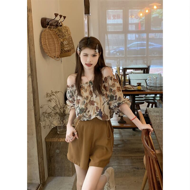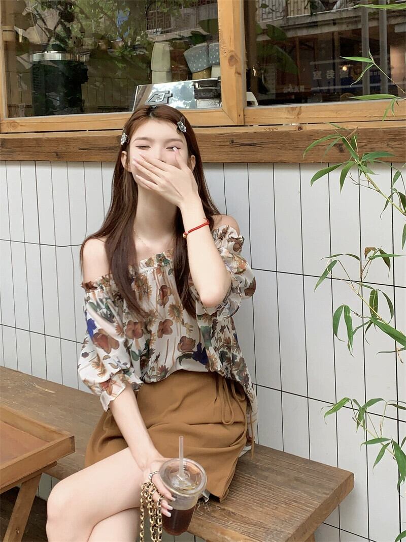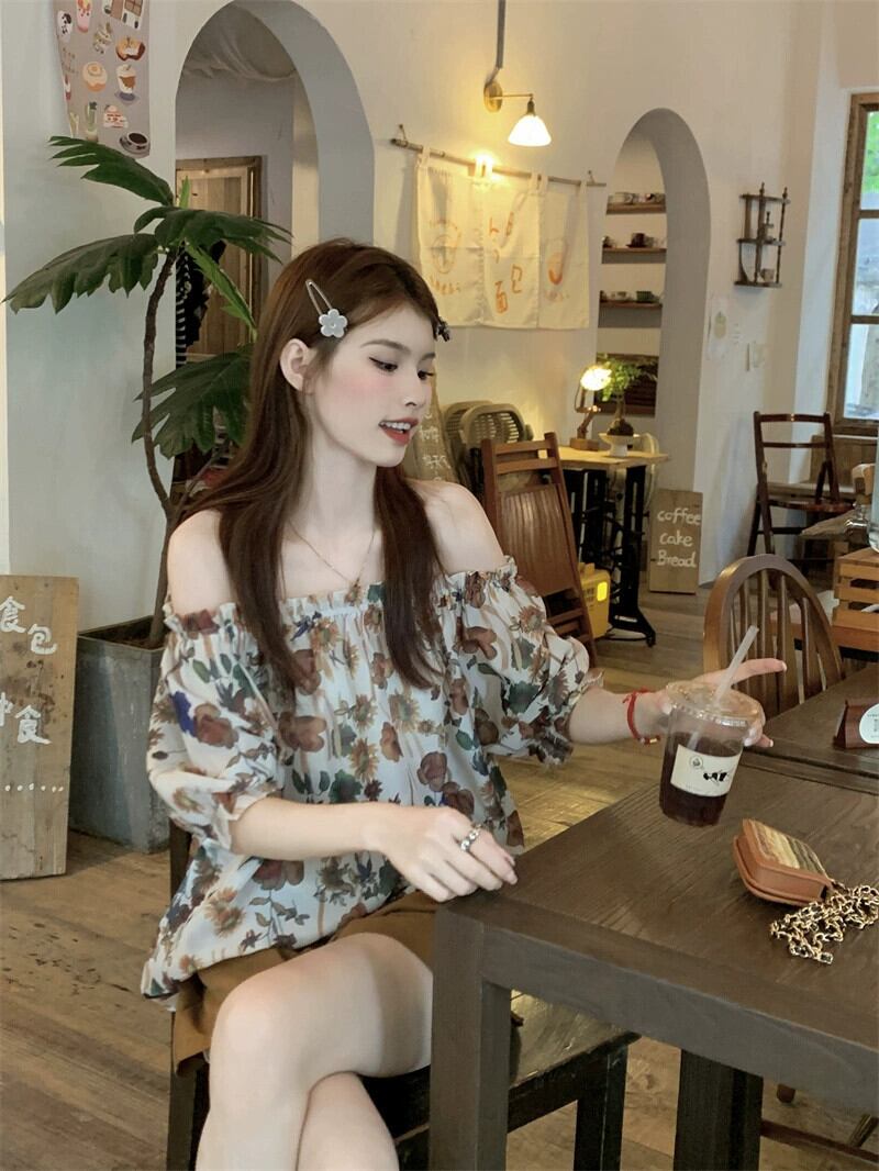 ワンショルダー花柄半袖シャツレディース2023年夏新作フレンチスタイル菌類エッジデザイン感のあるeignスタイルルーズトップ サマー 夏物 missk85145668359