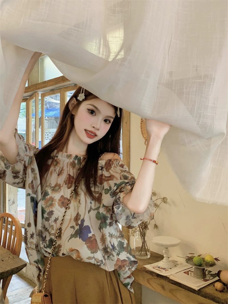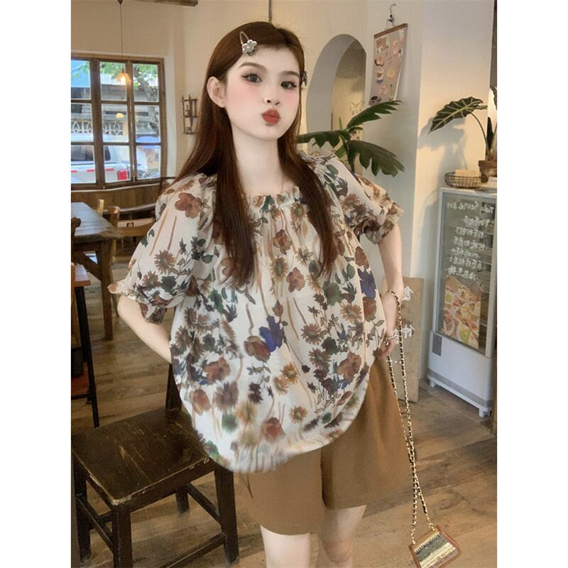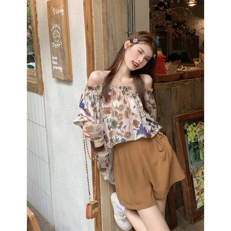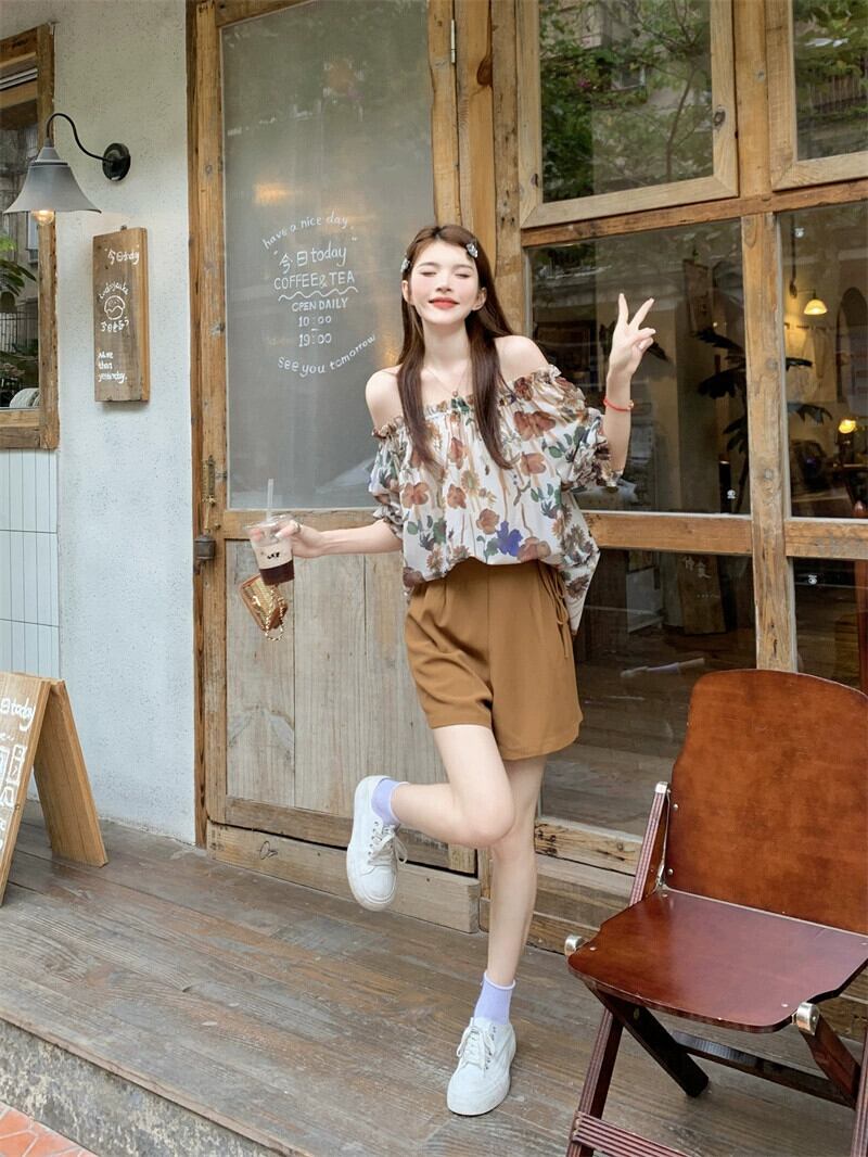 ワンショルダー花柄半袖シャツレディース2023年夏新作フレンチスタイル菌類エッジデザイン感のあるeignスタイルルーズトップ サマー 夏物 missk85145668359