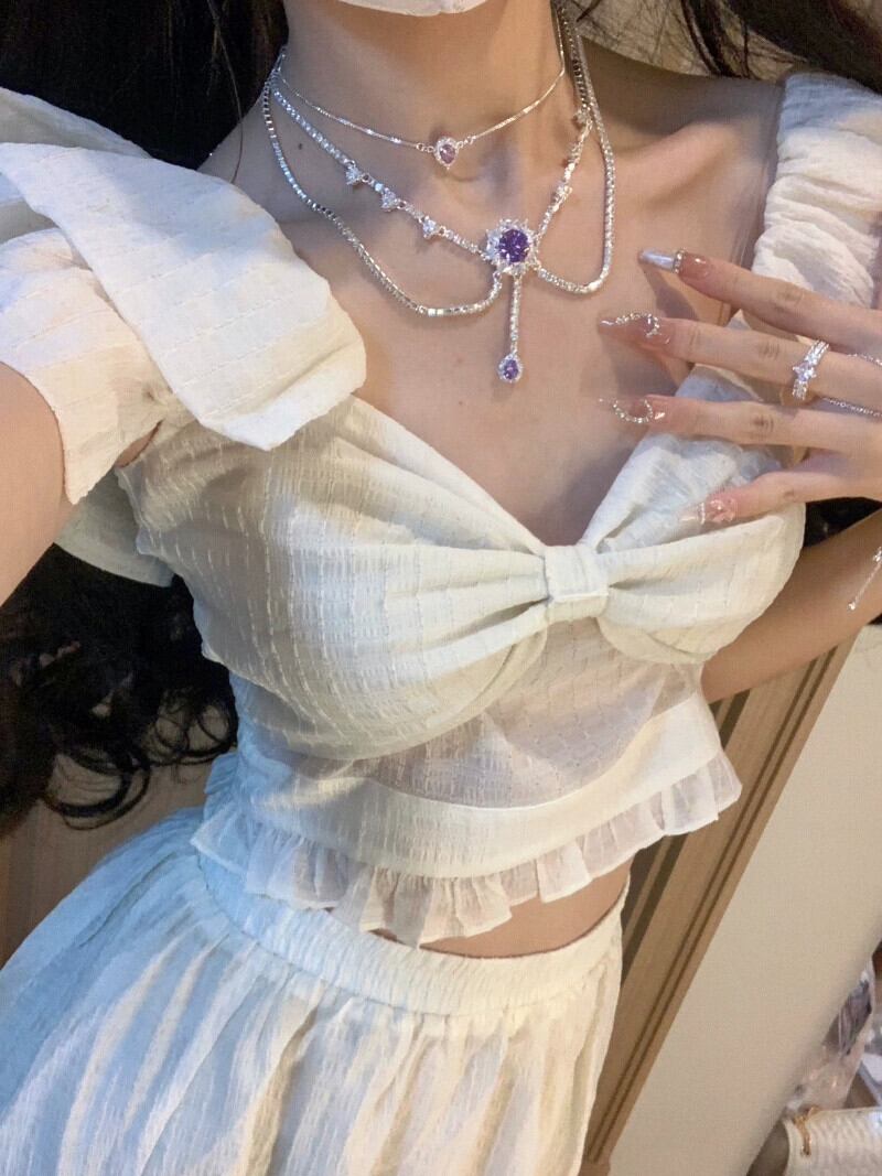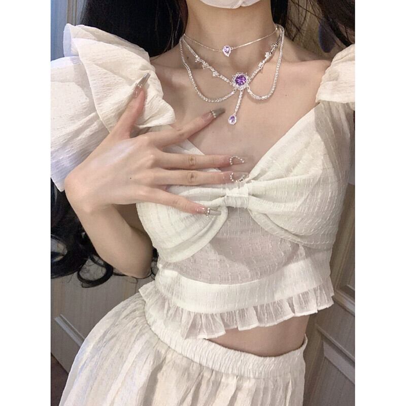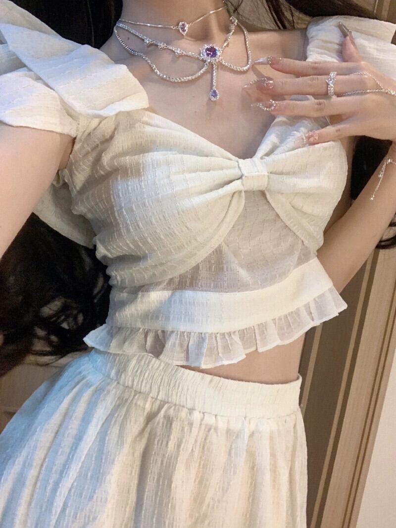 Feifei スリーブデザインセンスセレブ気質トップハイウエストスカート女性の夏の 2023 新しいファッションツーピースセット ハイウェスト サマー 夏物 missk58545481437