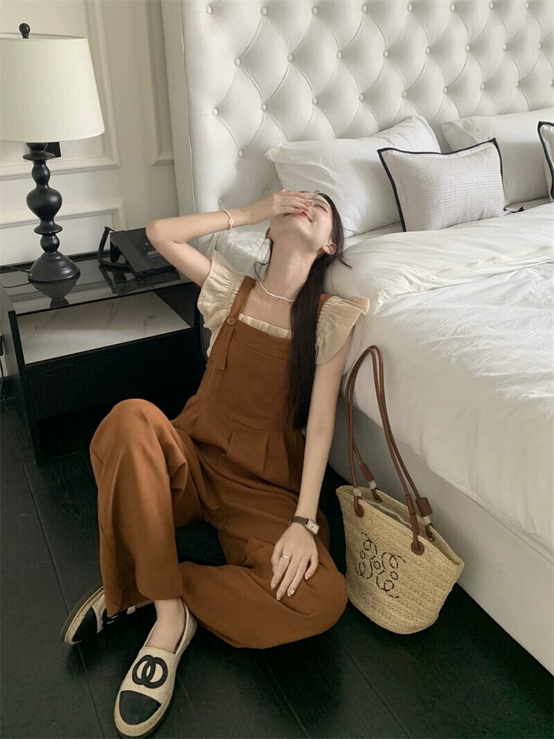 ソルトウェアニットトップ夏の新しいルーズツーリングサスペンダーワイドレッグパンツファッションツーピーススーツレディースファッション サマー 夏物 missk11058879364