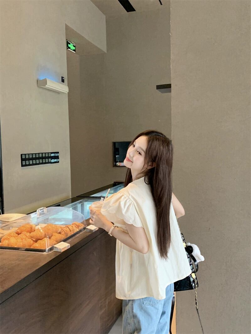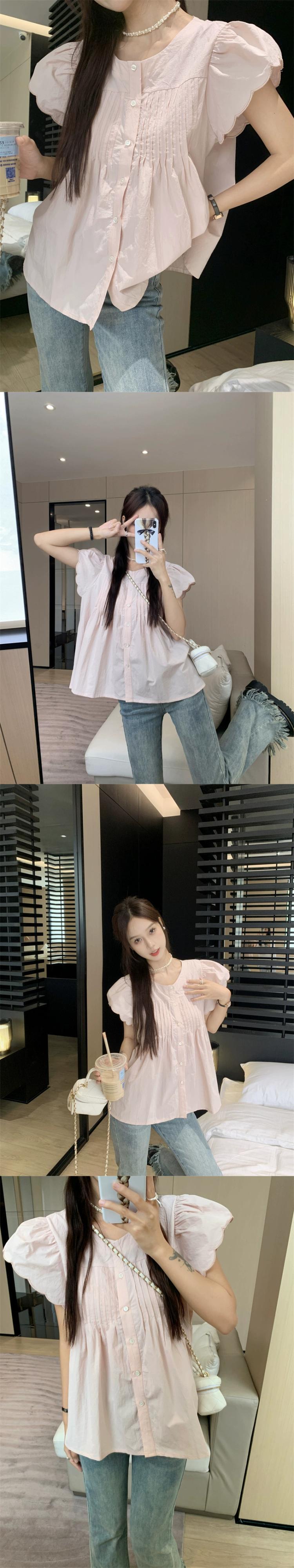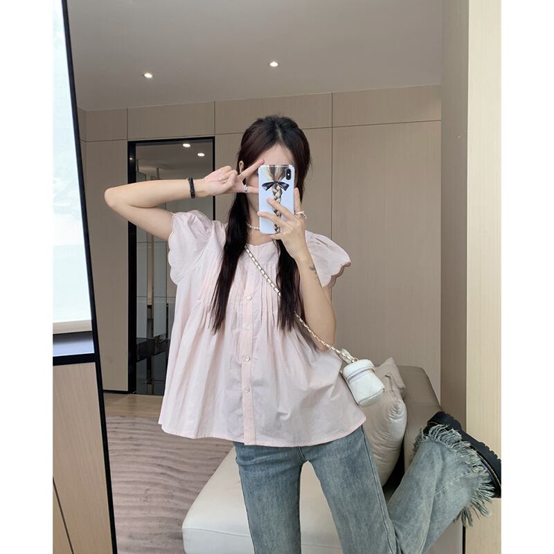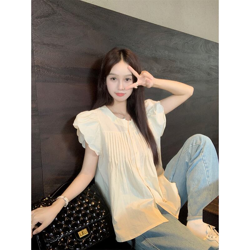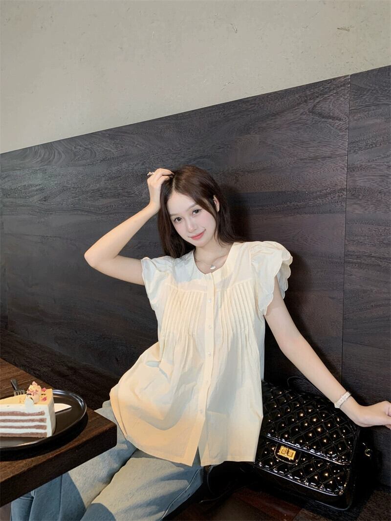 甘いフライングスリーブシャツ女性の夏新年齢を軽減するルーズプリーツデザインセンスニッチアインスタイルカーディガントップ潮 大人ガーリー スウィート キュート カジュアル サマー 夏物 missk47059588392