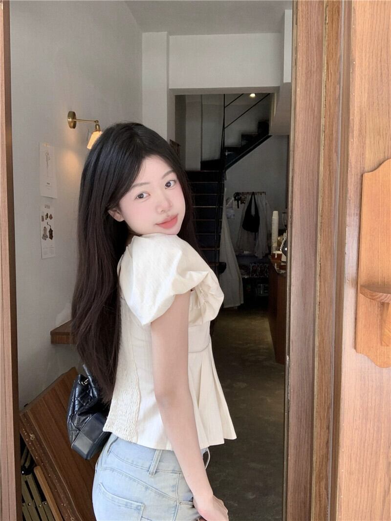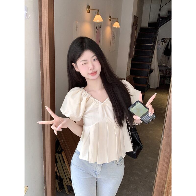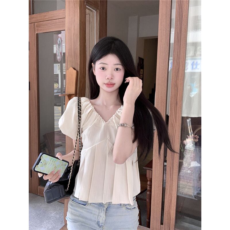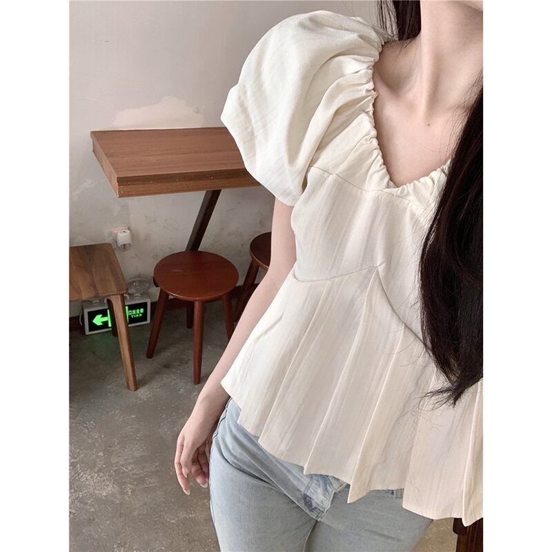 バブル半袖 V ネックシャツレディース 2023 夏の新作甘い気質デザインセンススリムフィット薄手のトップ 大人ガーリー スウィート キュート カジュアル サマー 夏物 Vネック missk55600658053
