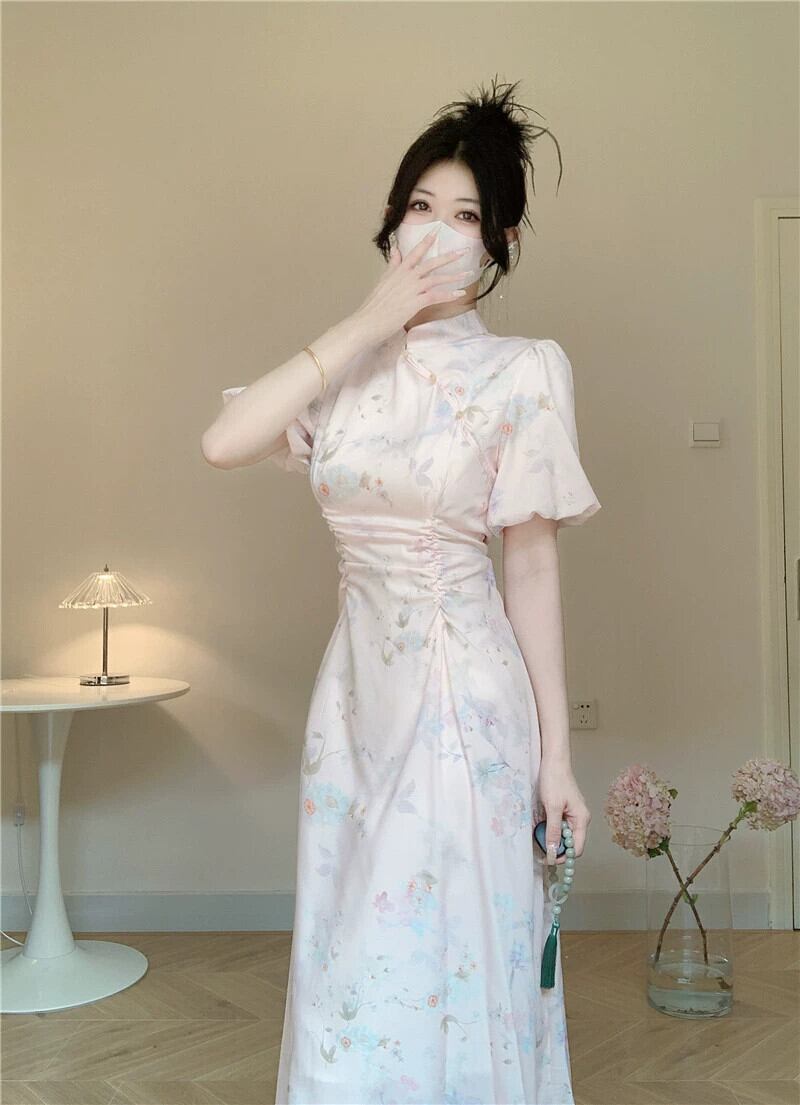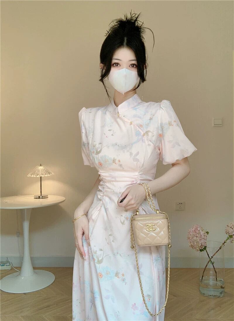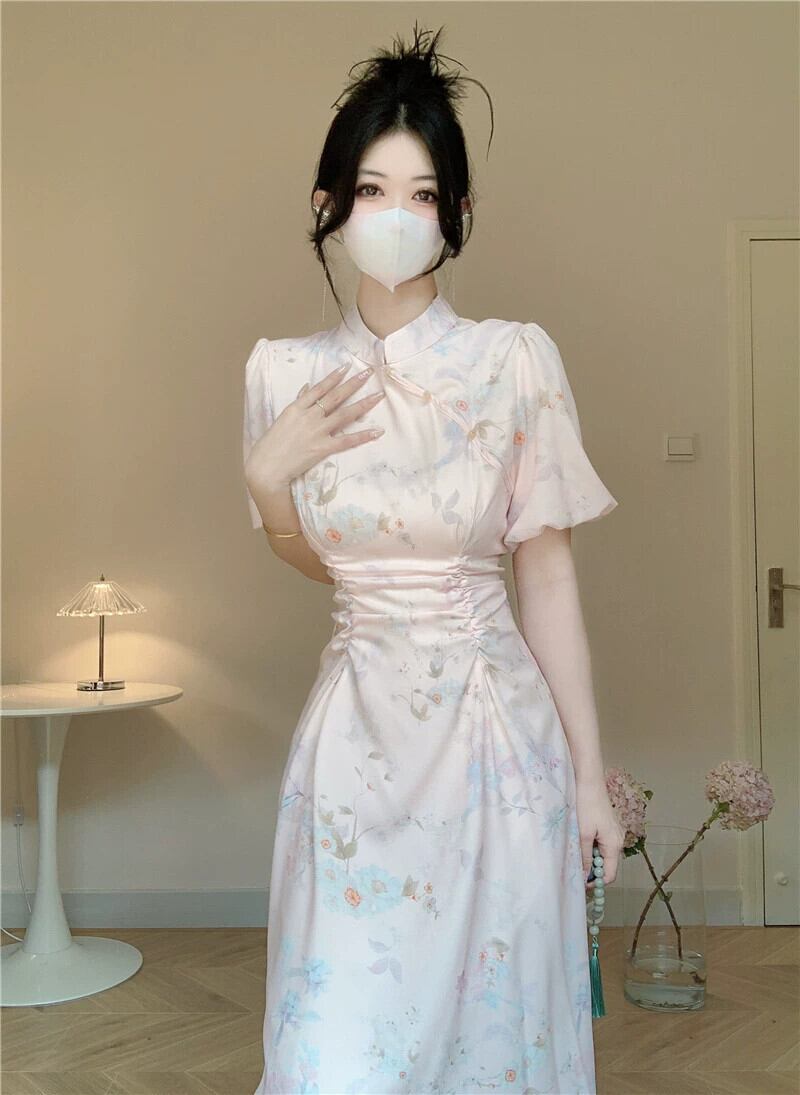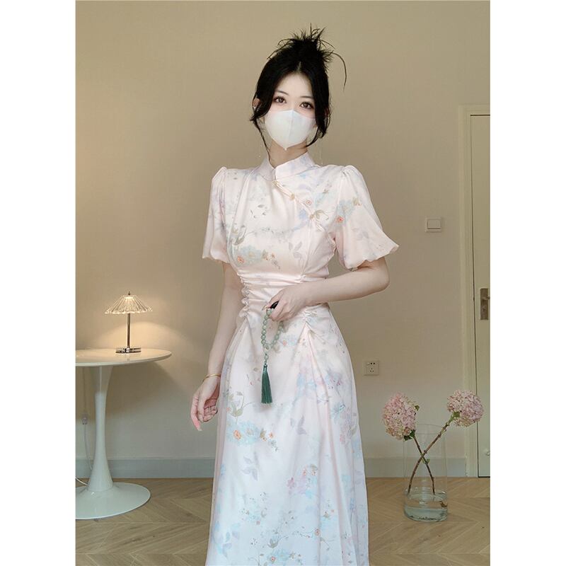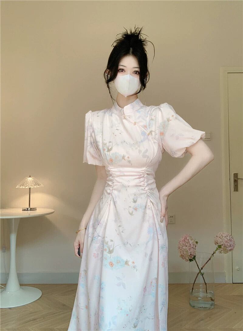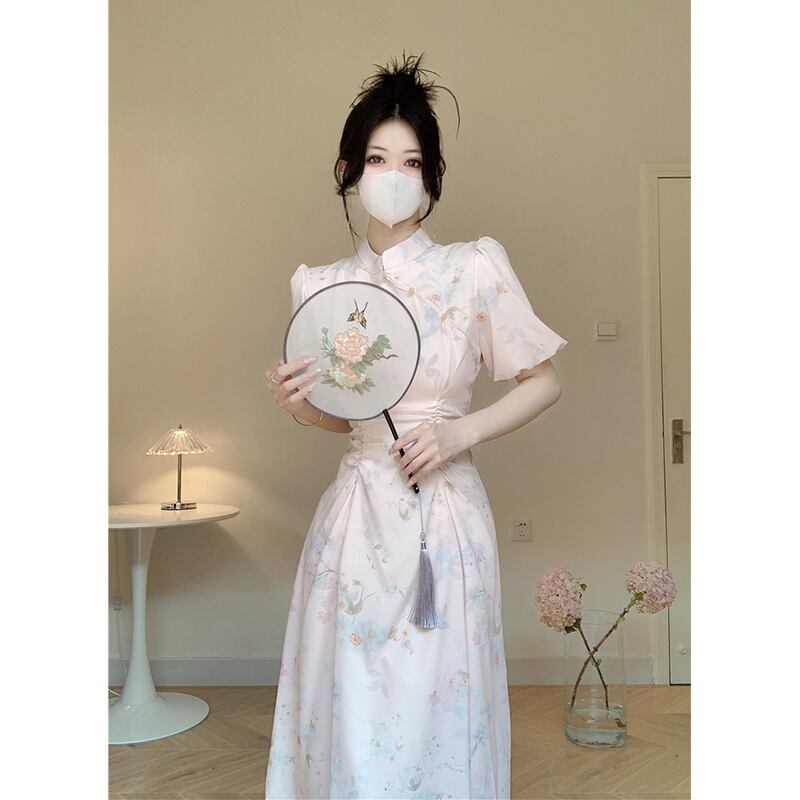 中国風ドレス夏 2023 新しい優しい風ウエスト痩身スタンドカラープリーツミッドレングス妖精スカート サマー 夏物 missk74667318422