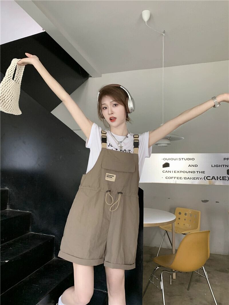 ツーリング ウィンド サスペンダー カジュアル パンツ レディース 2023 夏の新しいウエスト ドローストリング デザイン ワイドレッグ ショーツ シック サマー 夏物 ブルマー missk23321324266